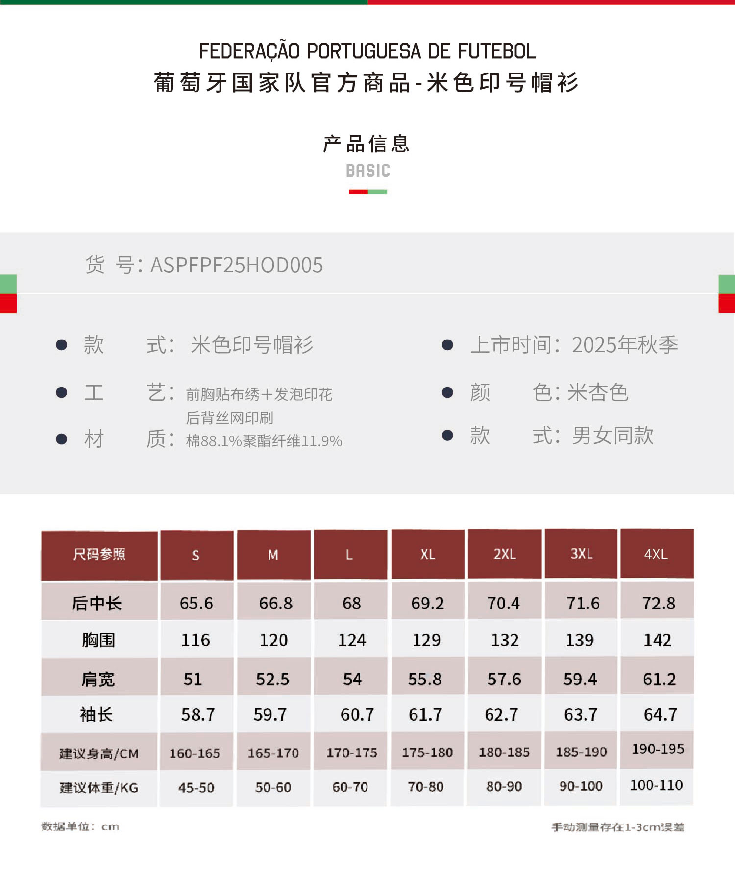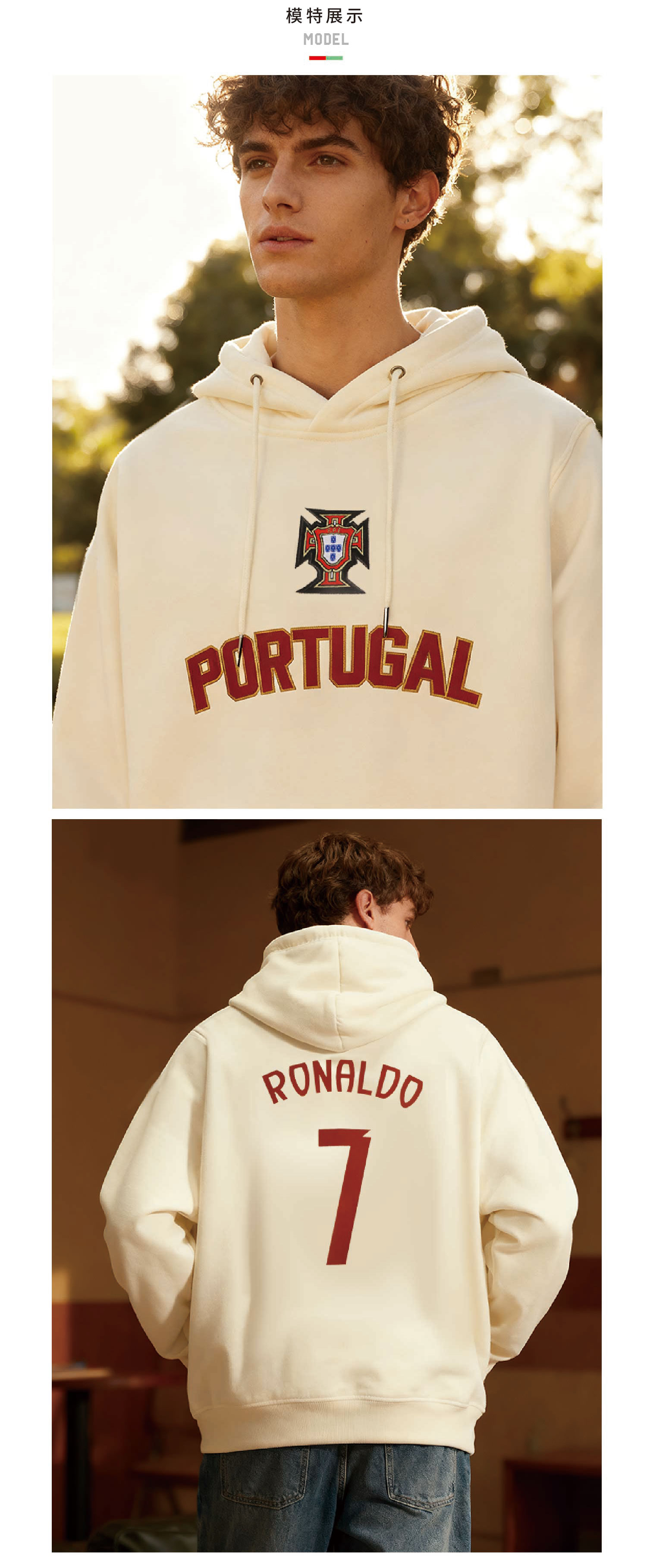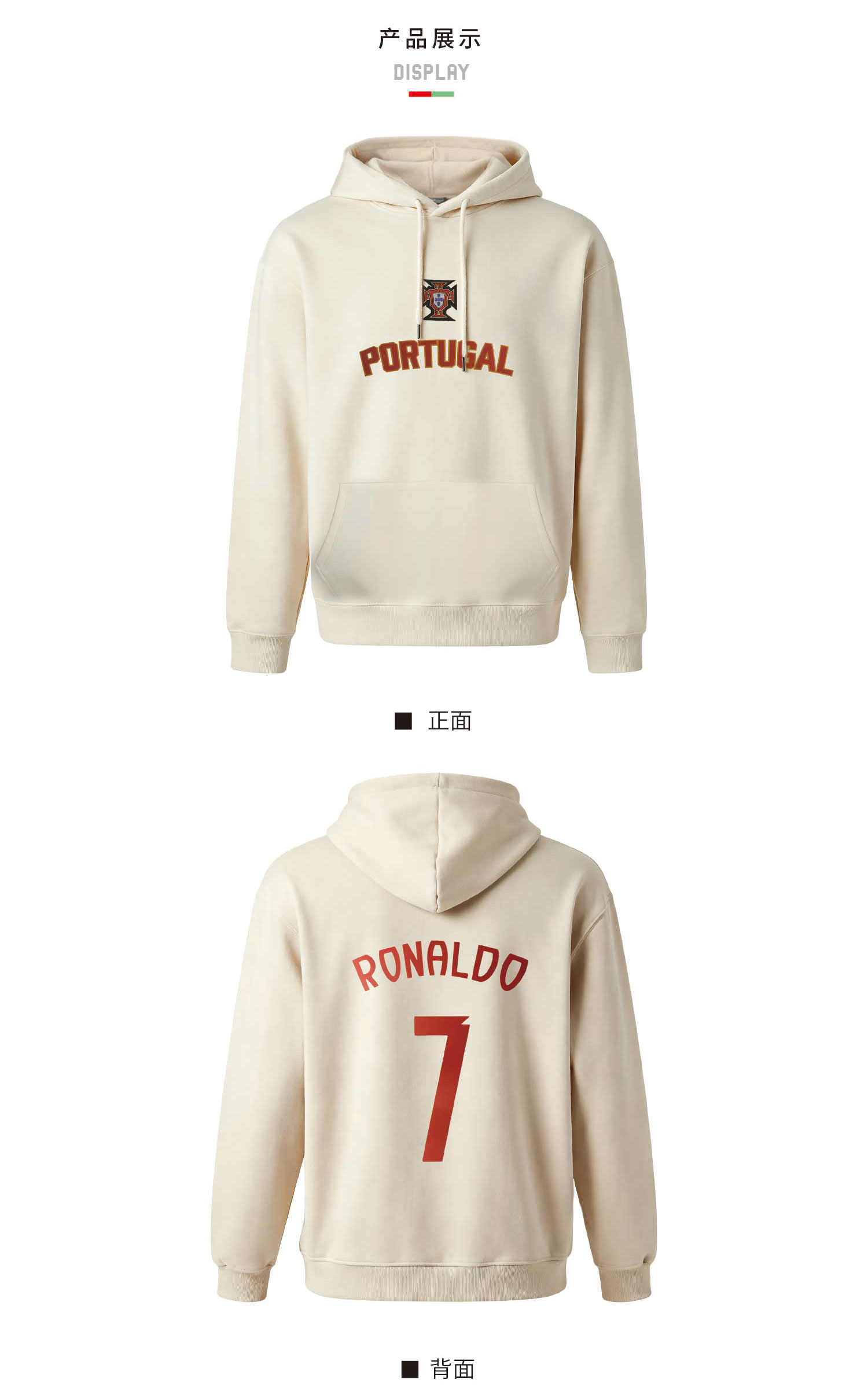 【官方正版】葡萄牙国家队 | 米色帽衫C罗印号连帽卫衣男女同款