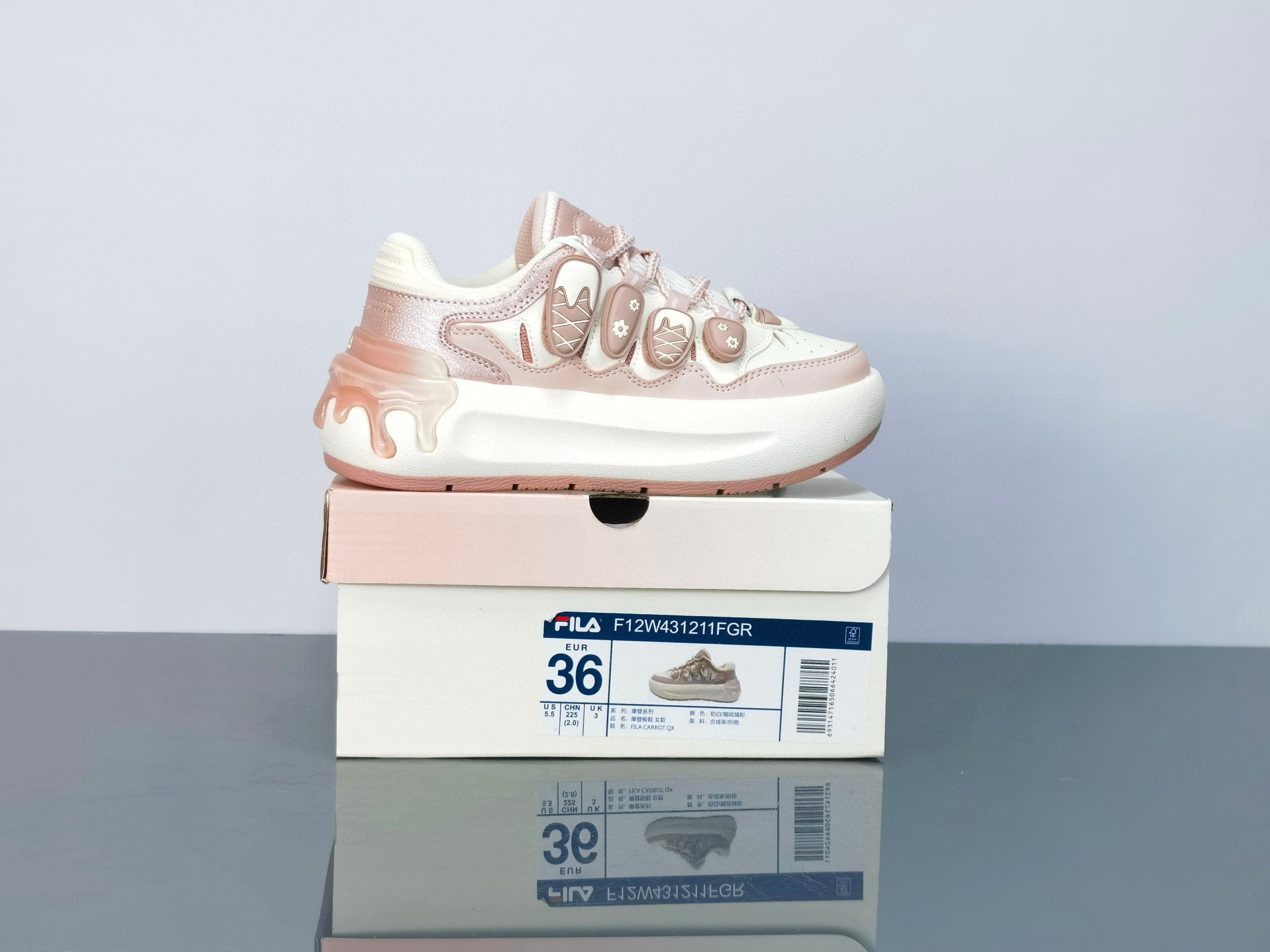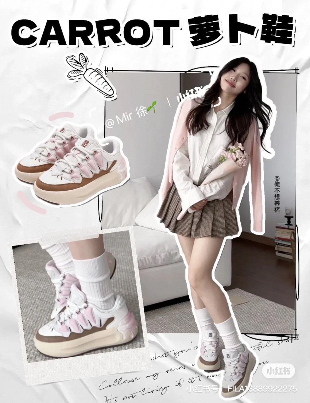 今年爆款😜斐乐萝卜鞋 可可爱爱面包鞋的轮廓整体看起来圆滚滚,标志性设计点就是鞋侧的小萝卜元素以及后跟融化的冰淇淋,四季可穿,款式不挑人厚底设计整双上脚就是拿捏小鸟腿精髓!!