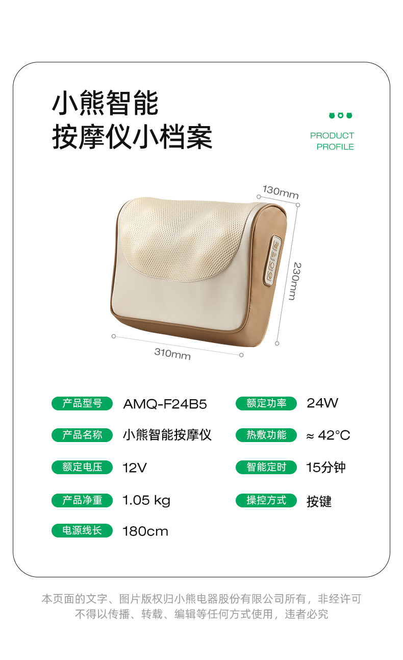 【小程序】小熊按摩仪(按摩枕) AMQ-F24B5 棕色 配适配器