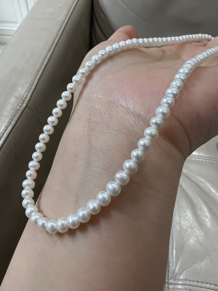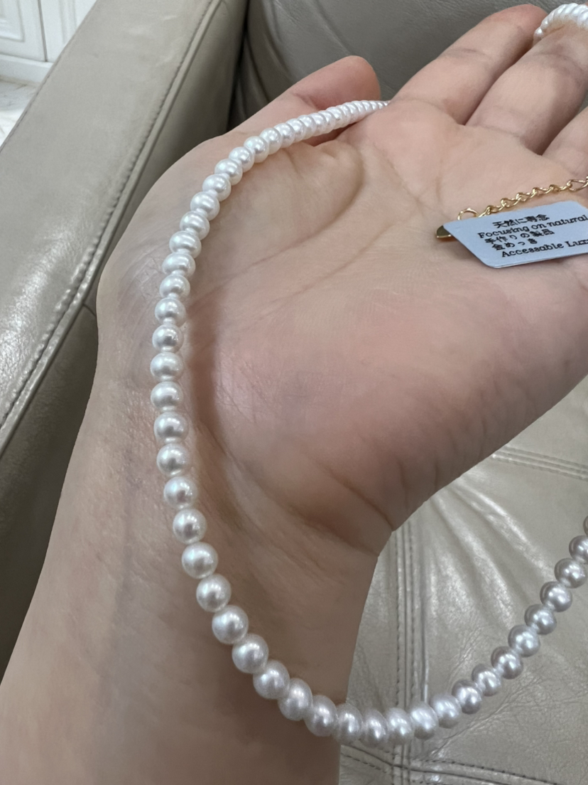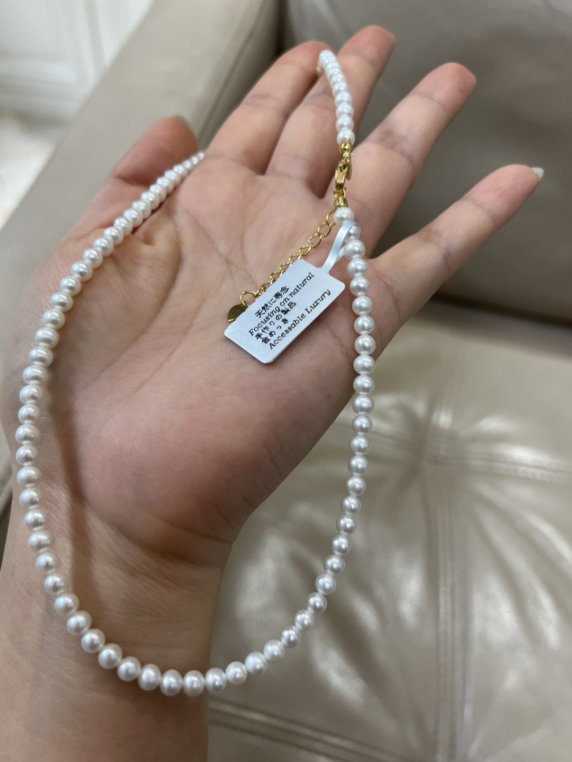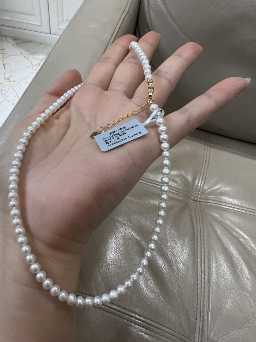 就算是普通的baby小米珠,我也是精挑细选,baby珠选用的是4-5mm的高品质强光淡水珍珠,近圆的品质,后面的吊坠配件,是925银镀真金,就这个吊坠拿到手里都有很扎实的感觉。Baby珠单独佩戴真的很灵很灵,这个光泽十分温润可人,阴雨天室内实拍,太好看了吧。