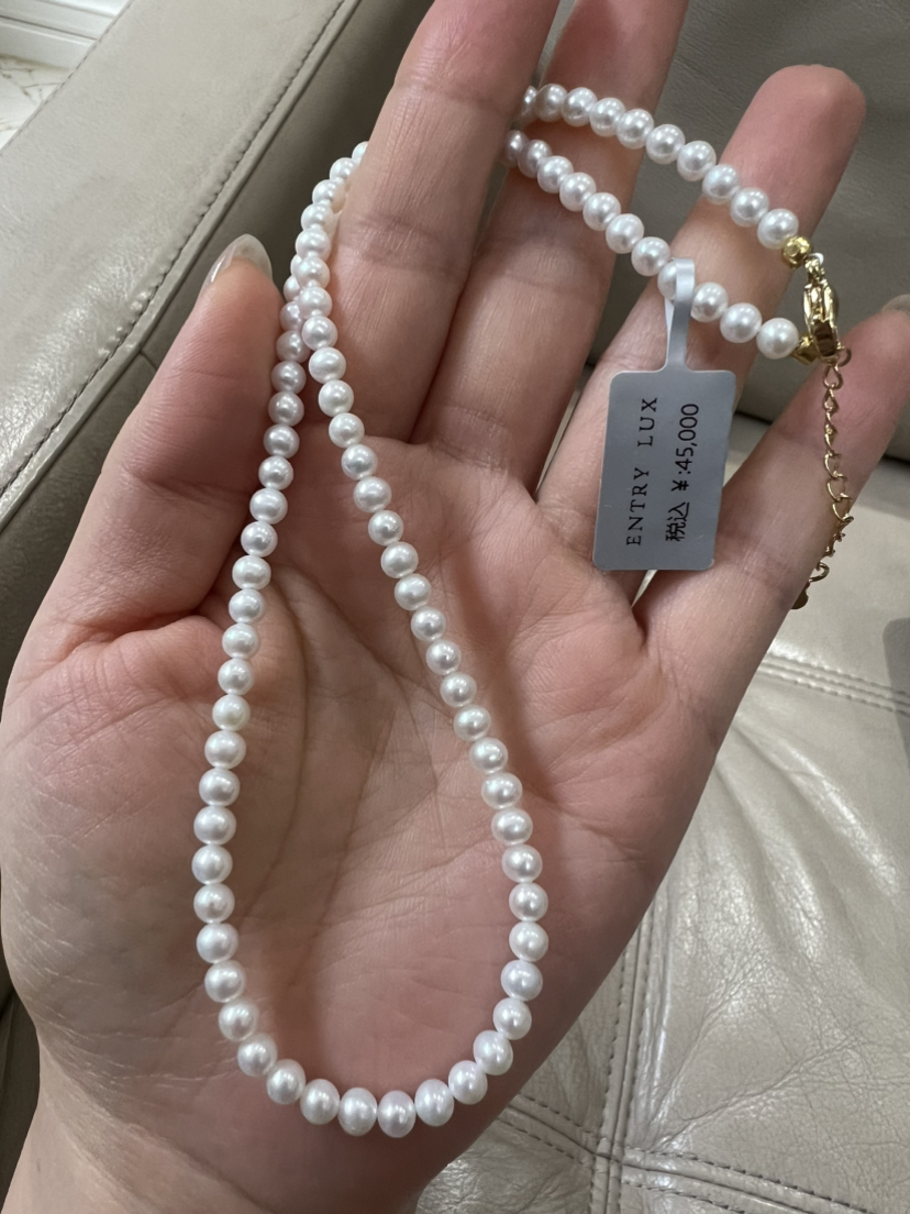 刚开始接触珍珠的小姐姐们,不妨还是基础款的素链带起,因为你会发现,带来带去,还是基础款利用率最高,夏天带珍珠,温润养人,没有什么金属过敏之类,而且佩戴起来格外舒适宜人。这单带叠带都是相当的好看呢,珍珠项链全长42cm,调节链条4cm,加调节链46cm。