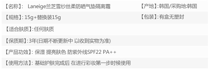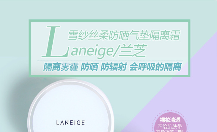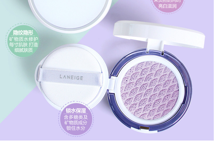 【现货】韩国 兰芝气垫BB霜水漾隔离霜紫色绿色雪润无瑕粉凝气垫