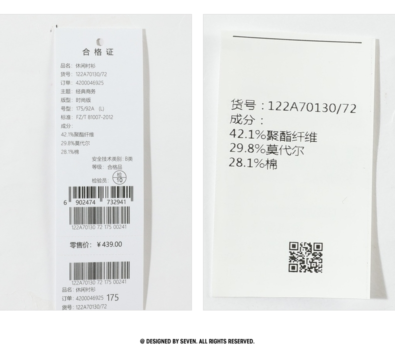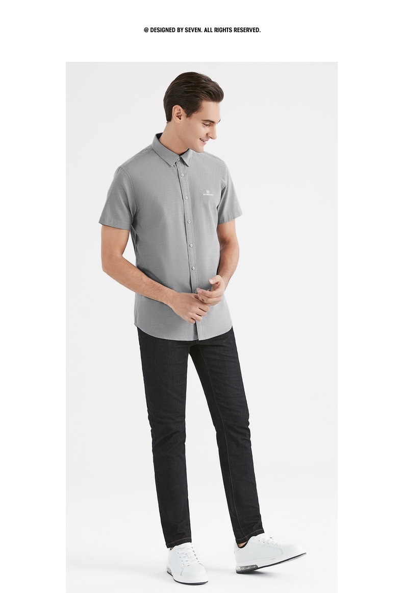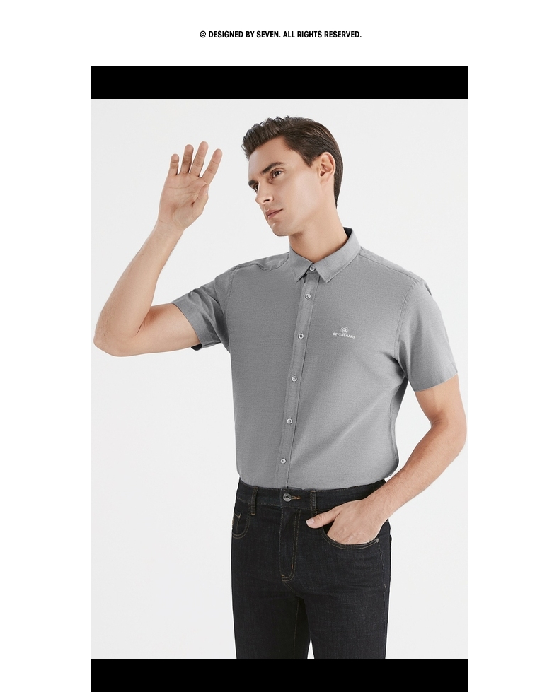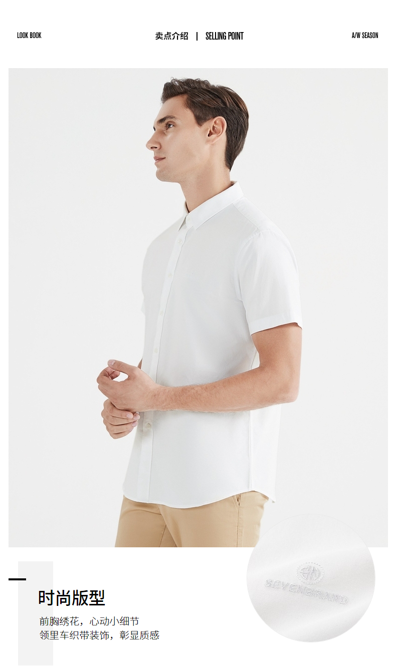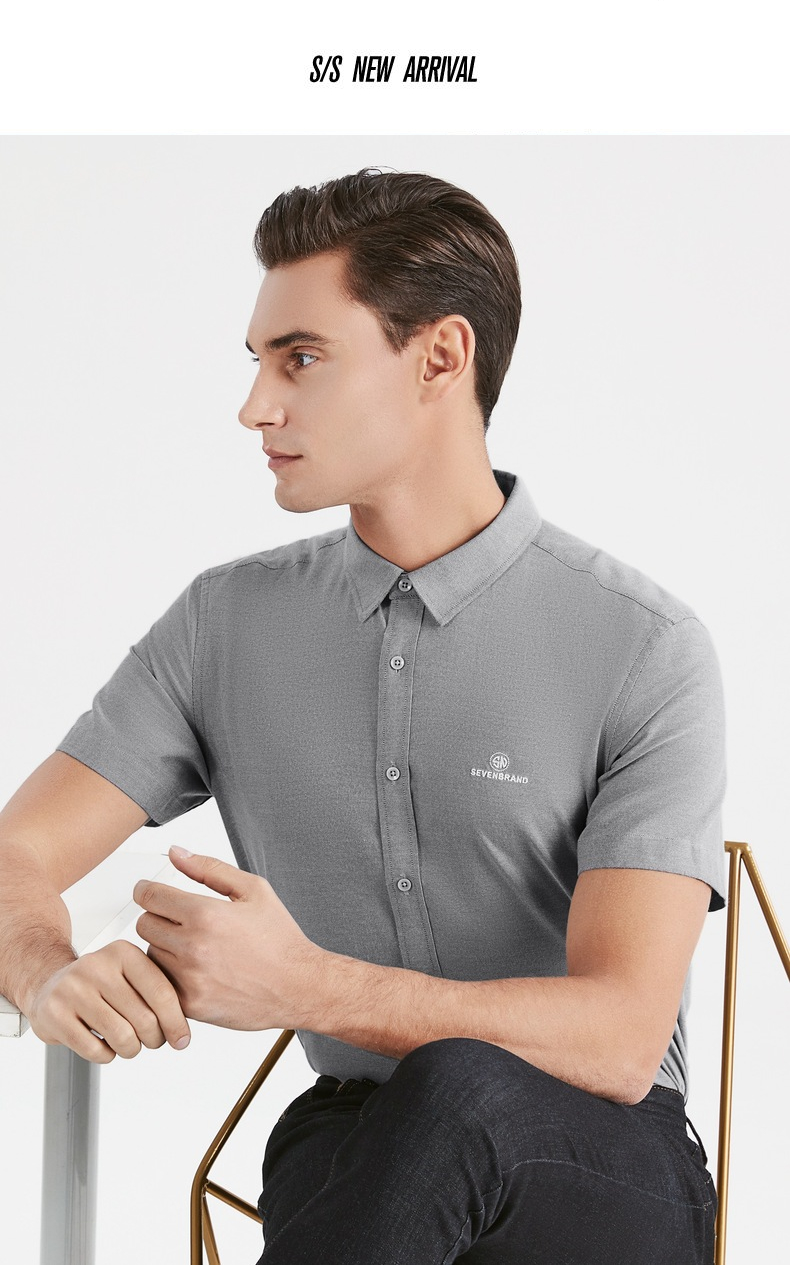 【特价】柒牌衬衫短袖男夏季新款商务通勤中青年含莫代尔男士翻领内搭衬衣122A70130