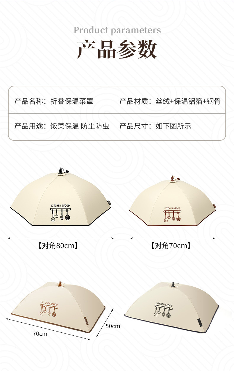 【可折叠加厚保温菜罩】冬天吸盘保温菜罩饭菜神器盖菜罩剩菜罩子 新款可折叠家用餐桌罩,伞式折叠 一秒开合。ry