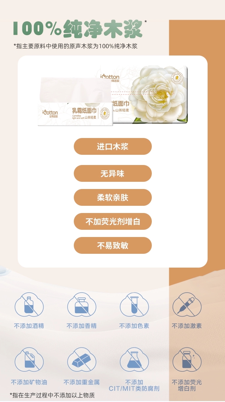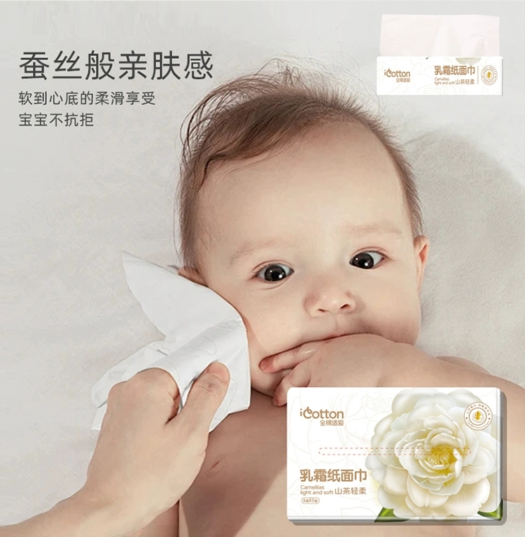 【品质好货】全棉适爱 乳霜纸面巾80抽三连包装