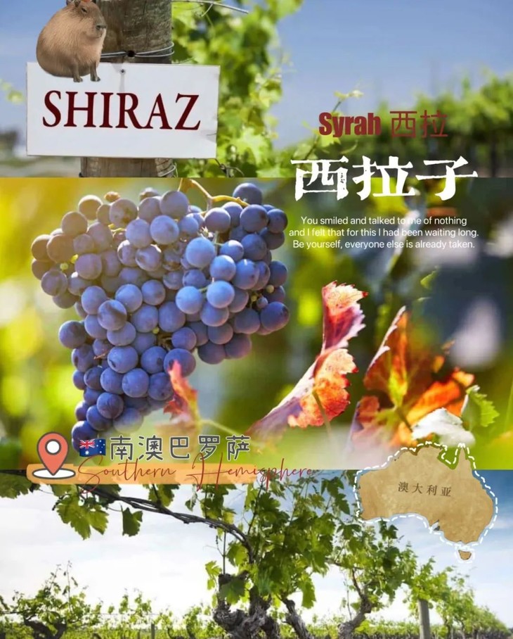 在澳大利亚,只要有葡萄的地方就有西拉 大约一半以上葡萄种植区的葡萄藤上挂的是西拉 不管是从质还是从量上看 西拉都是澳洲毋庸置疑的国宝级葡萄品种