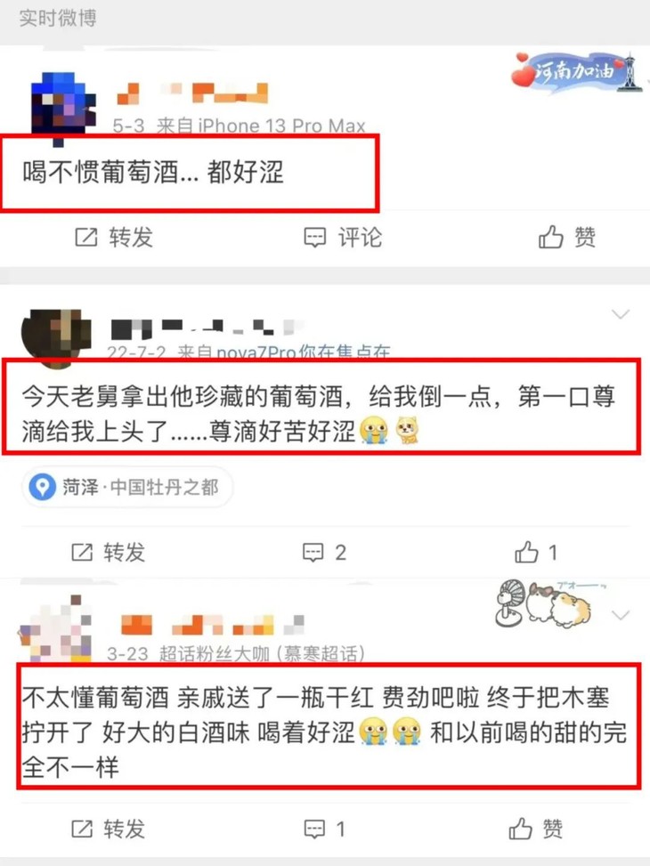 但,大概10个人里面得有一半的人 觉得葡萄酒入口酸涩、发麻: 就像低度白酒+嚼了一嘴葡萄皮的酸涩麻嘴。