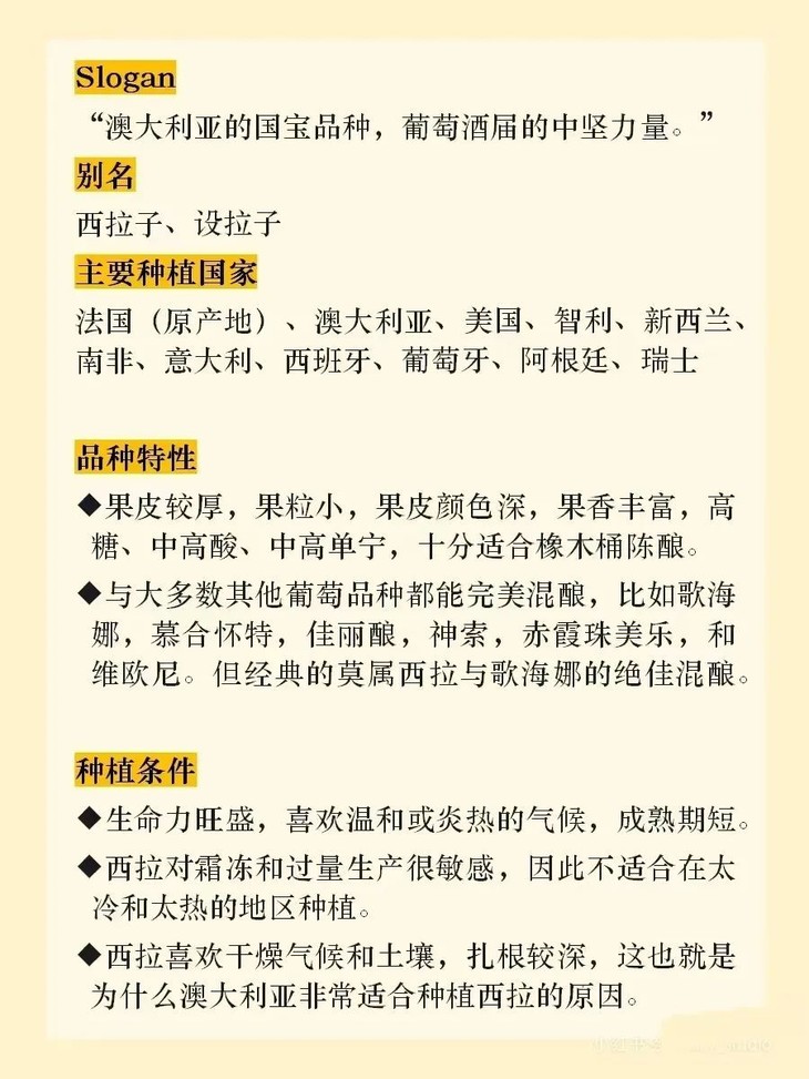 喝一口西拉葡萄酒 你会感受到它口感浓郁,酒体饱满。 单宁丰富但质地柔软 酸度适中,不苦不酸不涩~
