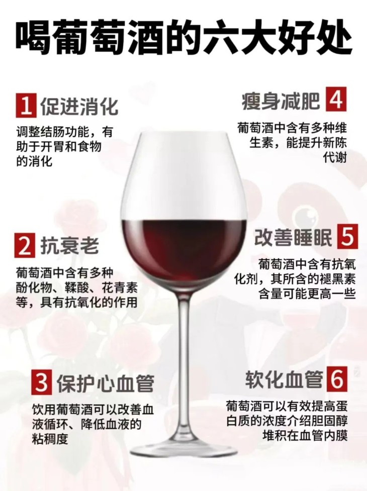 除了吃法多,葡萄酒的好处也是超多的: ✅促进消化、K衰老、保护心血管 瘦身减肥、改善睡眠、软化血管。