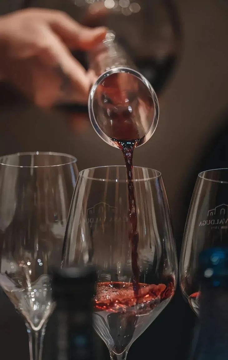 倒入杯中,美妙的感觉更上一层。 甜红宝石般红润的酒体格外好看 微微晃动,光泽流转是风味的堆积。