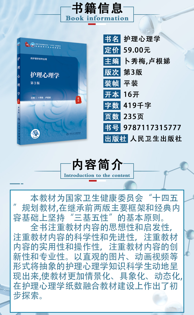 护理心理学 第3版 十四五规划全国高等中医药教育教材 卜秀梅 卢根娣 供护理学类专业用 人民卫生出版社9787117315777
