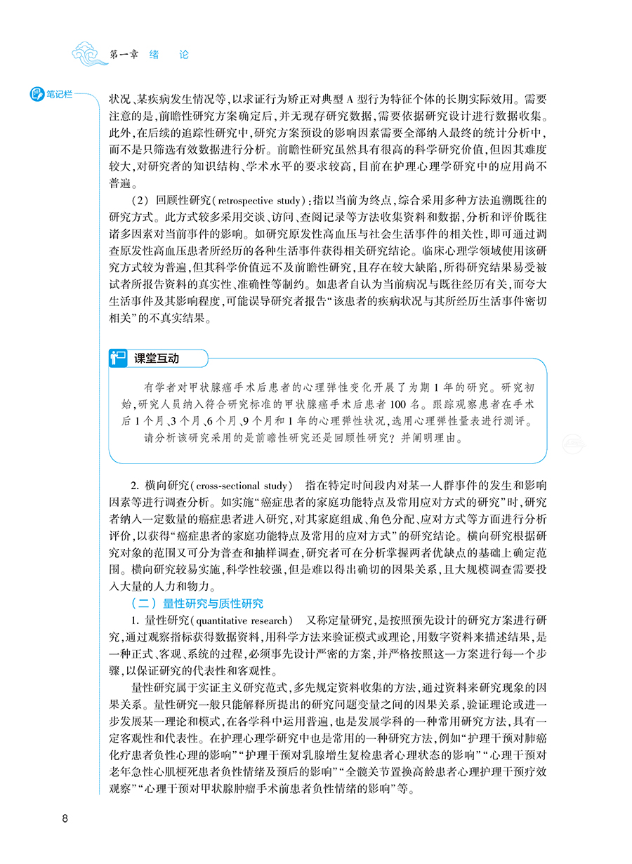 全书注重教材内容的思想性和启发性,注重教材内容的科学性和先进性,注重教材内容的实用性和操作性,注重教材内容的创新性和专业性。以直观的图片、动画视频等形式将抽象的护理心理学知识科学生动地呈现出来,使教材更加情景化、具象化、动态化,在护理心理学纸数融合教材建设上作出了初步探索。