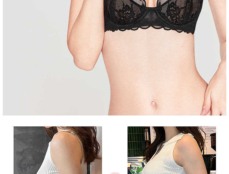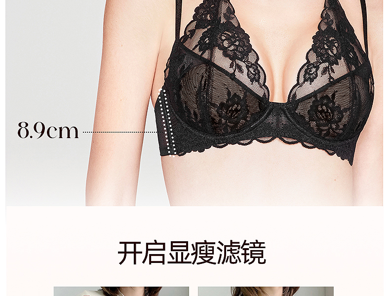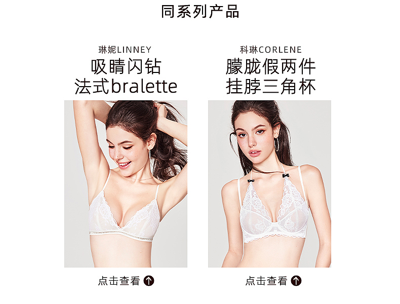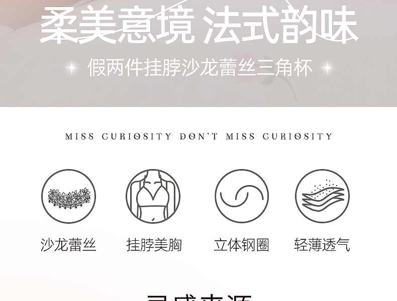 好奇蜜斯法式内衣纯欲性感大胸显小文胸罩套装春蕾丝薄小胸 科琳