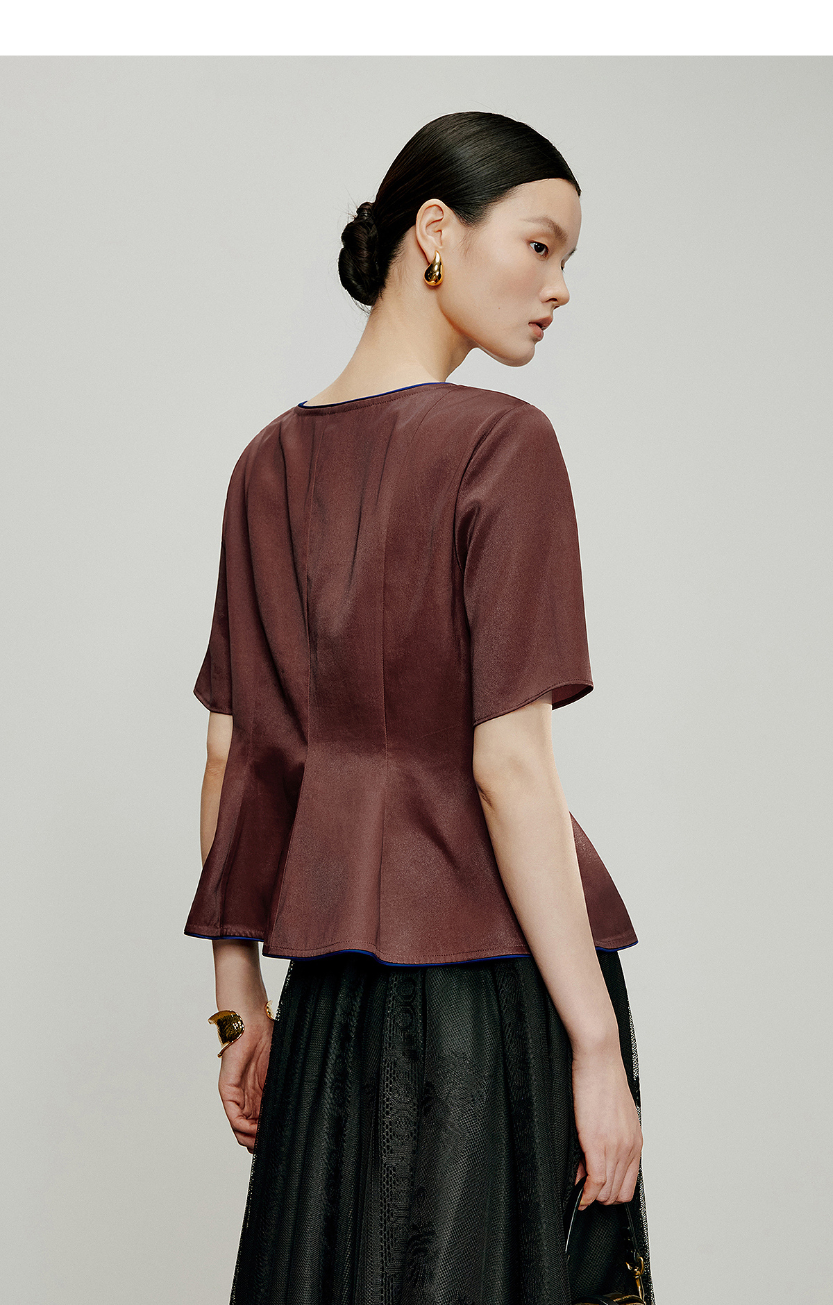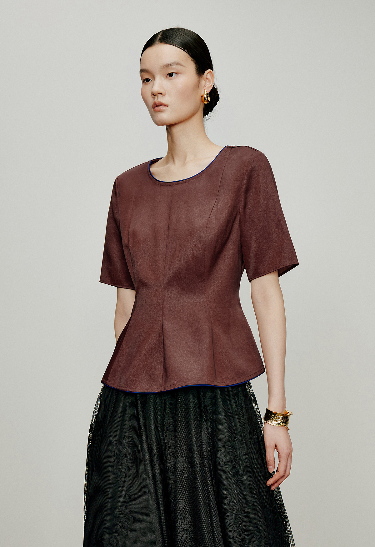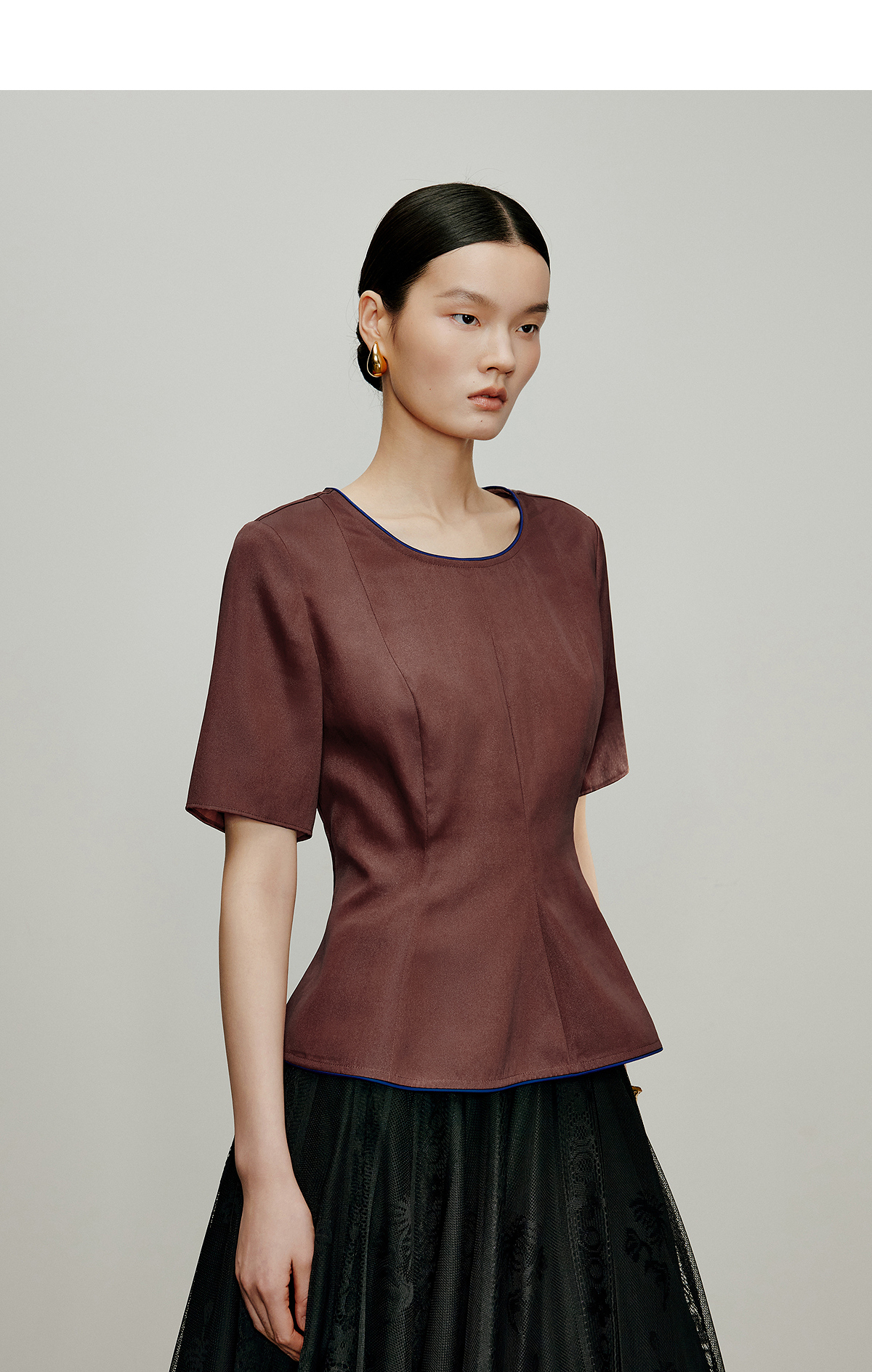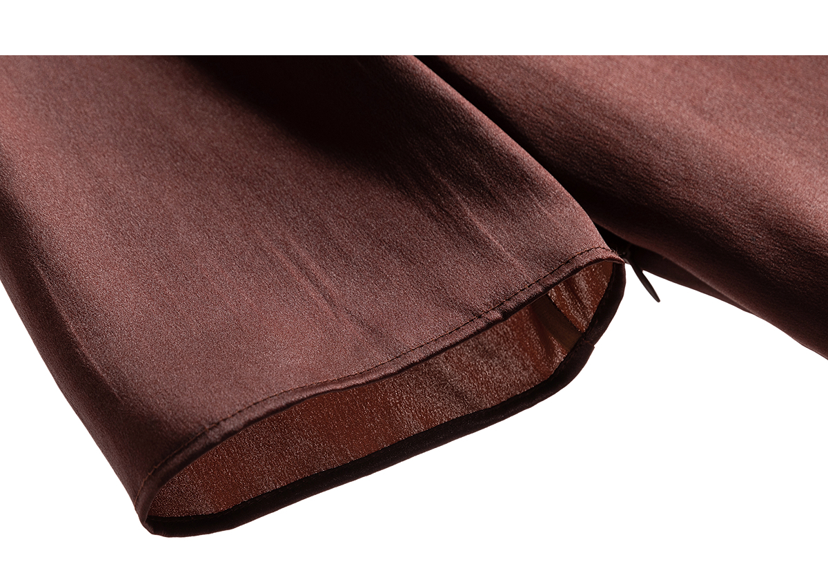 【林栖设计小店】落日霞光|素平缎红云纱荷叶边修身显瘦2026夏新款T恤1962029