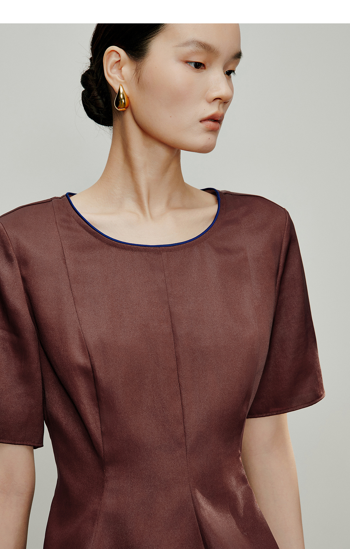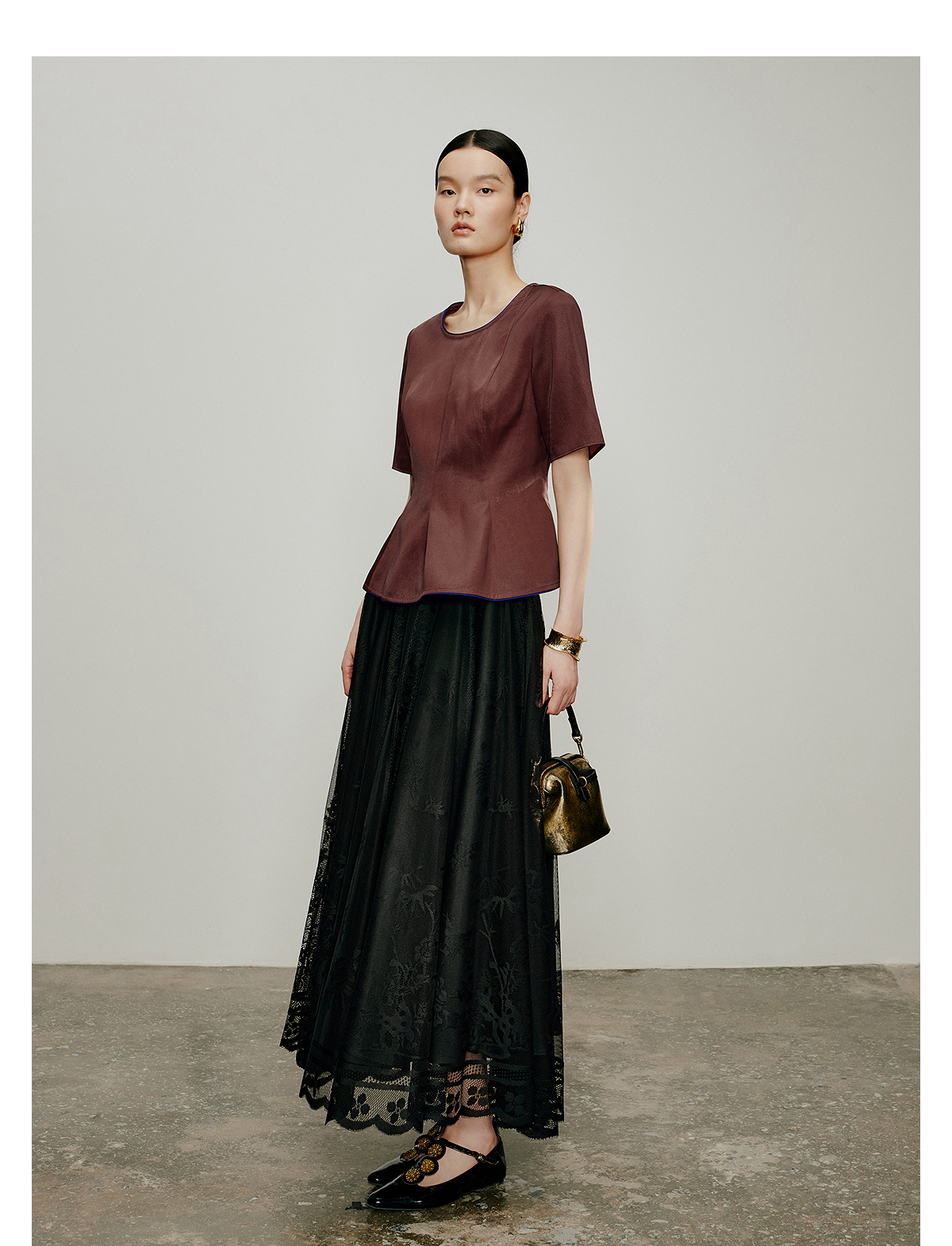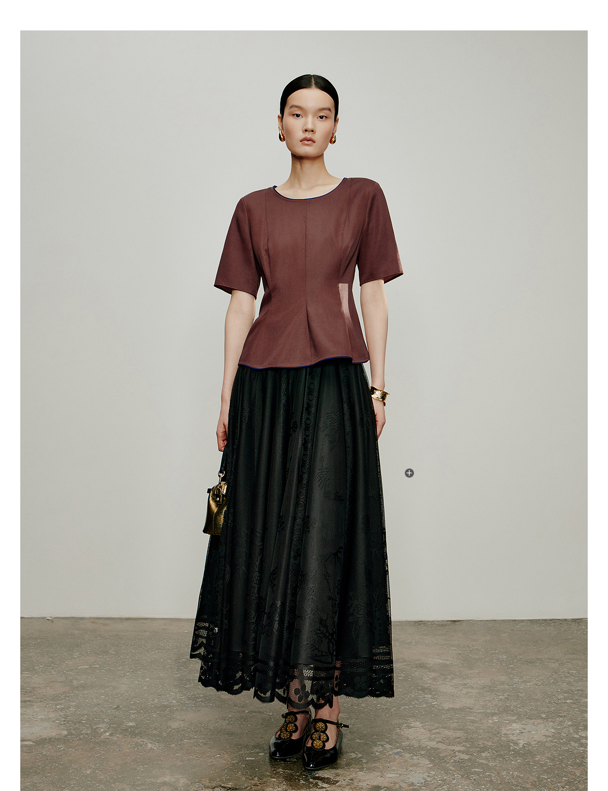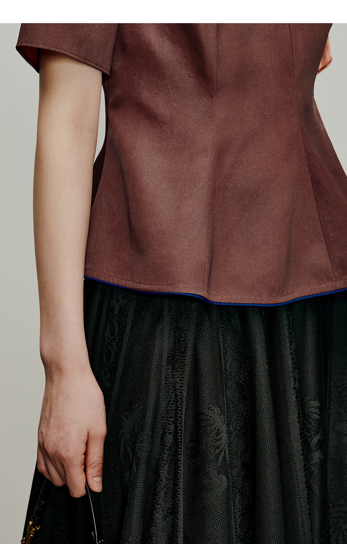 【林栖设计小店】落日霞光|素平缎红云纱荷叶边修身显瘦2026夏新款T恤1962029