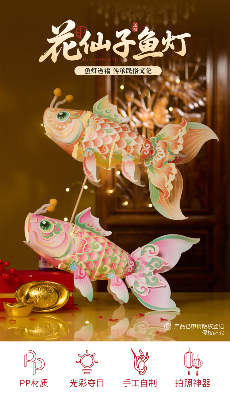 【供】中秋节花仙子鱼灯手工diy锦鲤金鱼灯笼儿童制作材料装饰拍照花灯