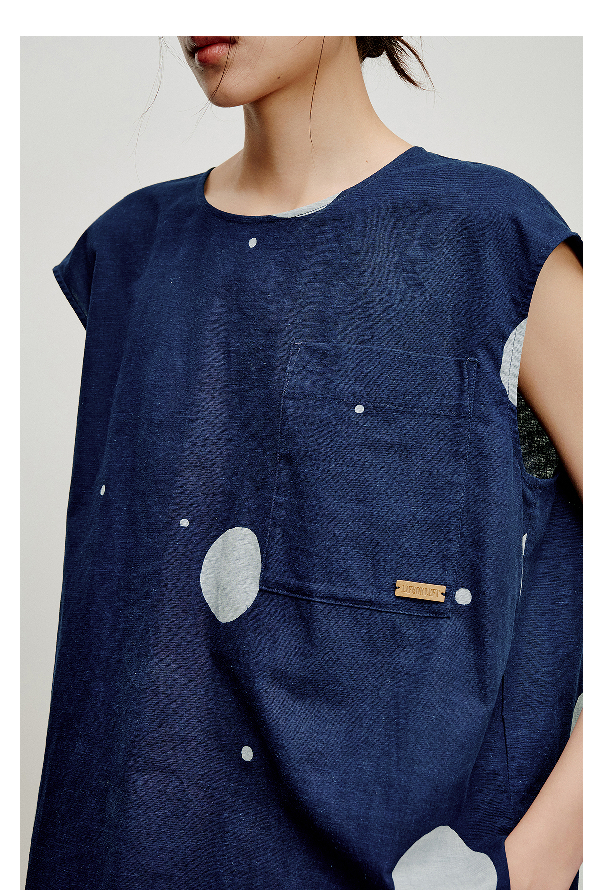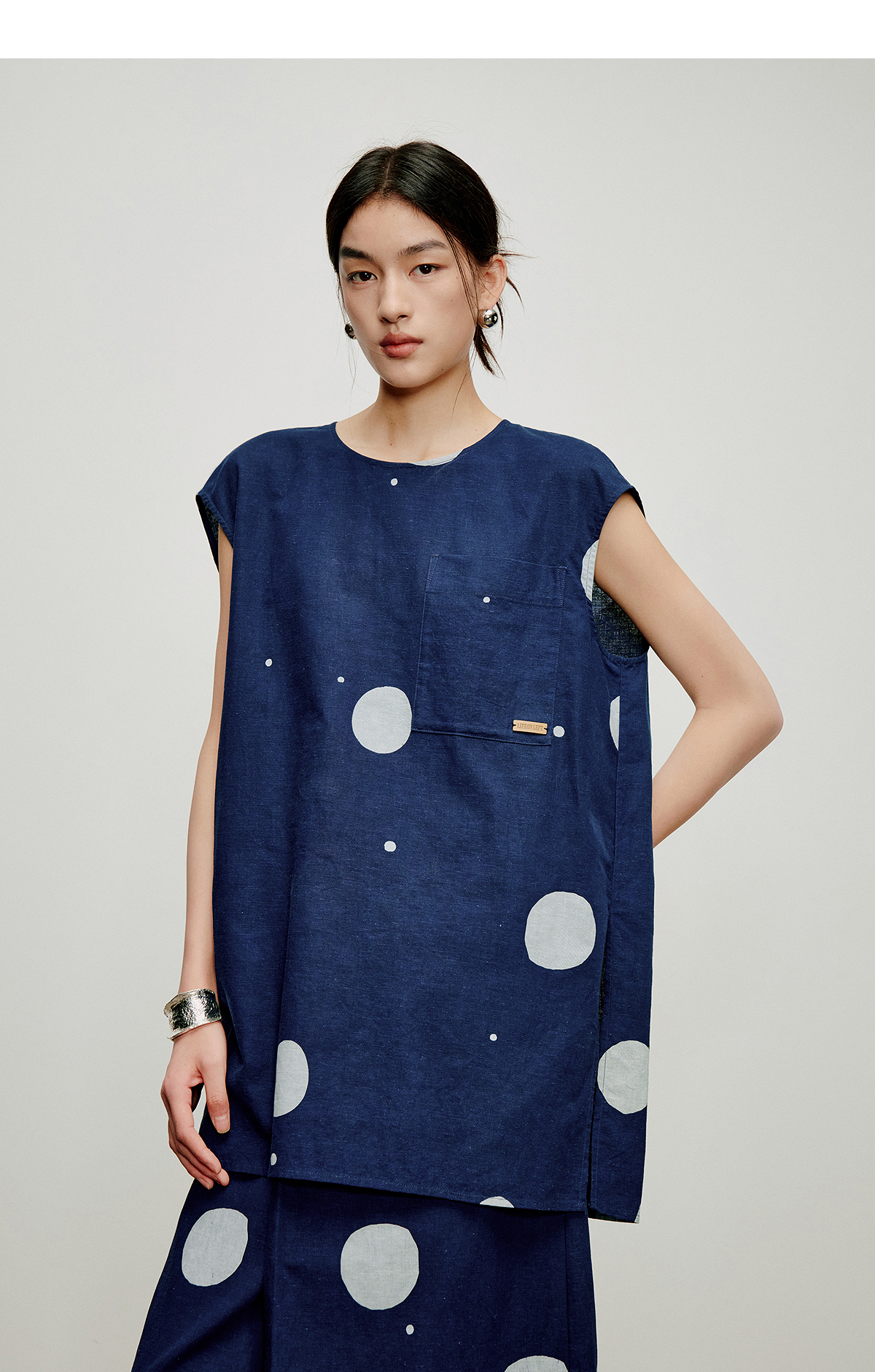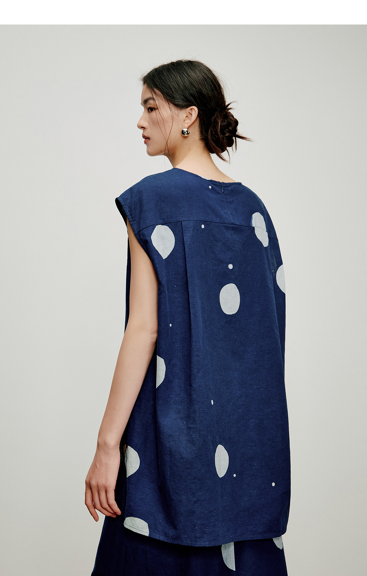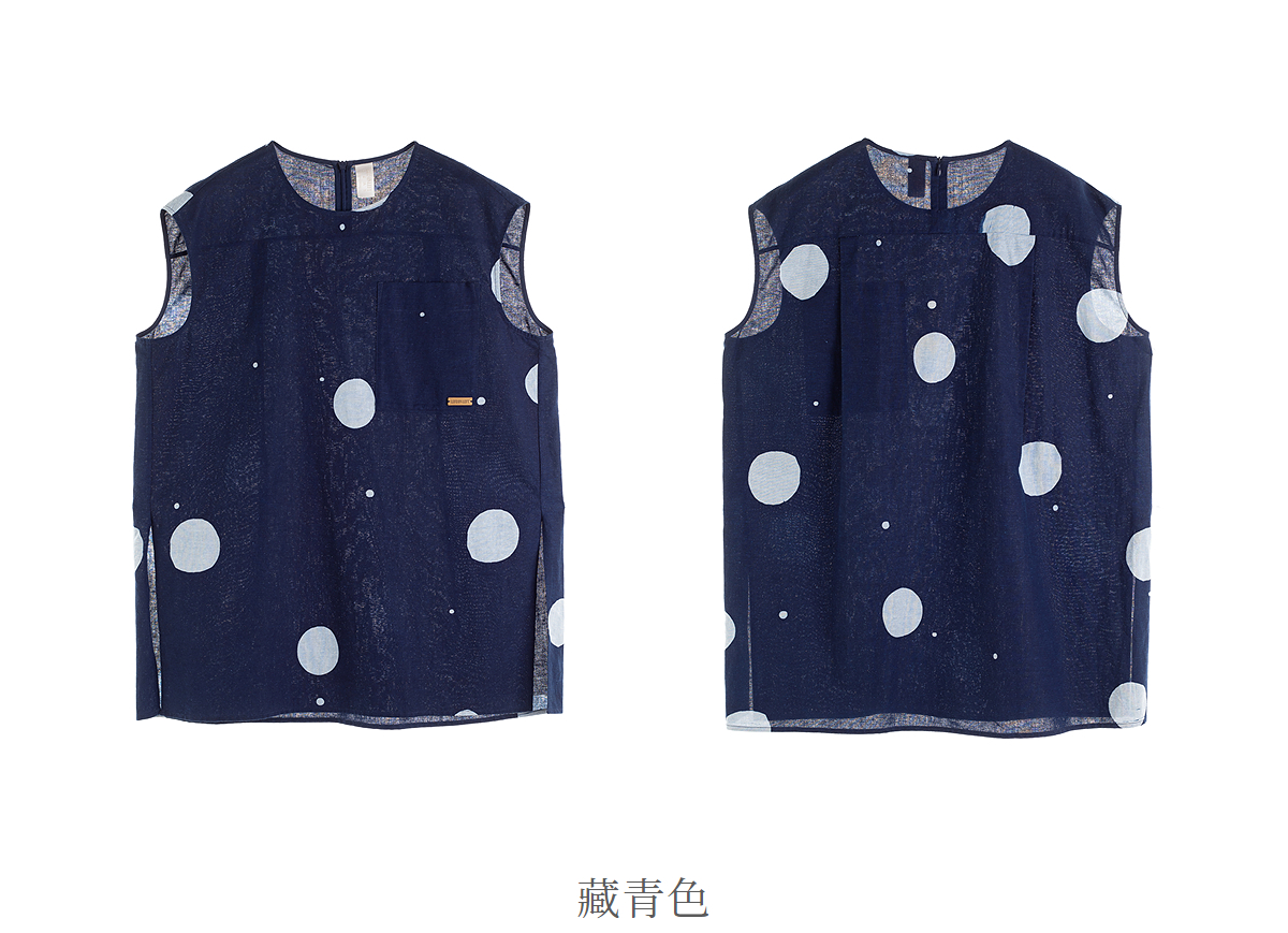 【林栖设计小店】明月疏星|手钉皮革章蓝印花布夏新款优雅吊带背心1962181