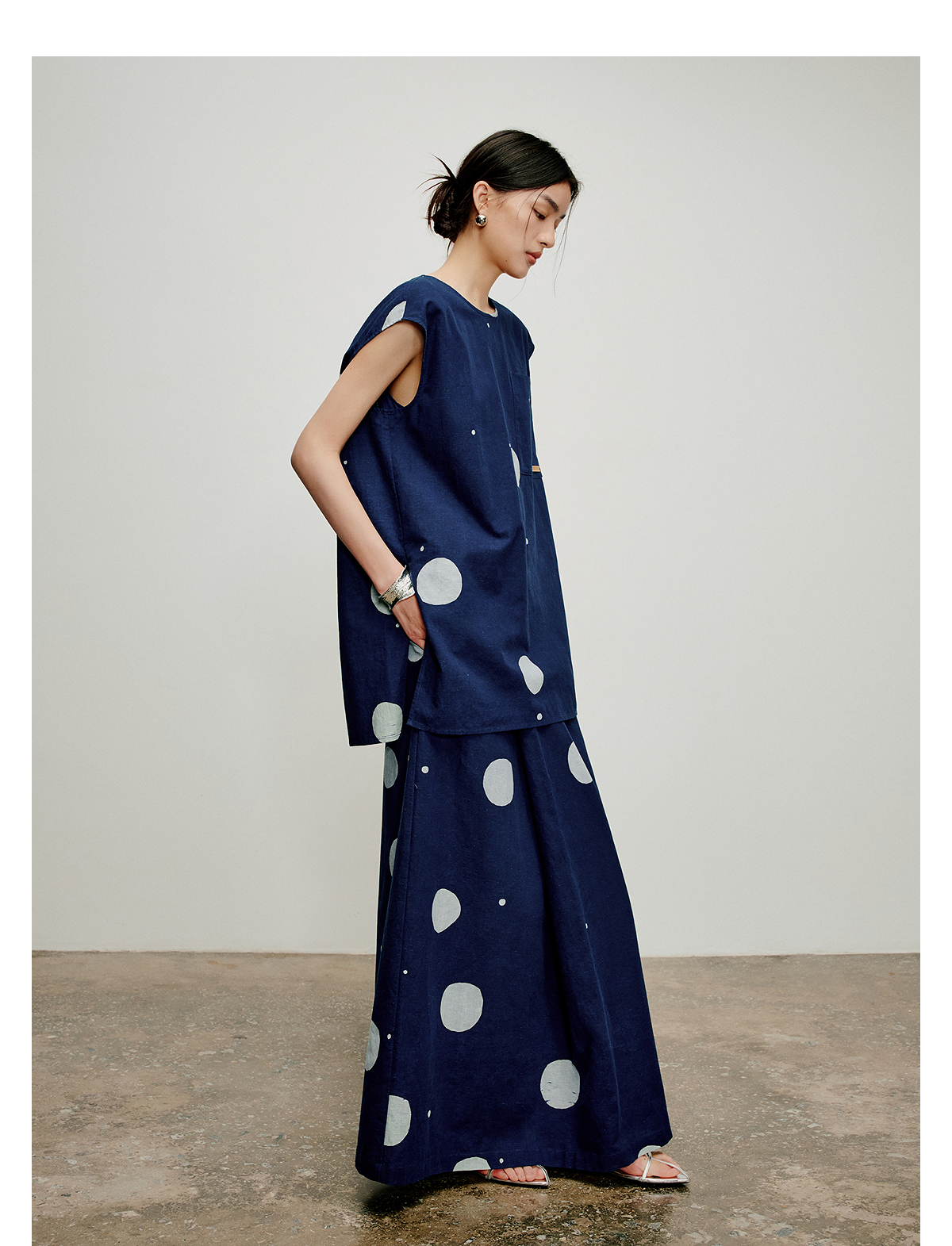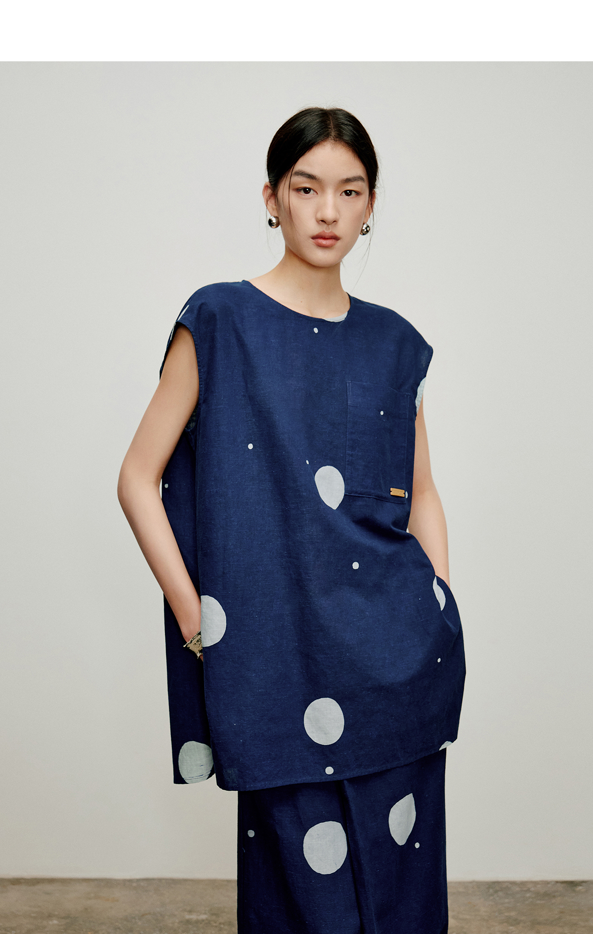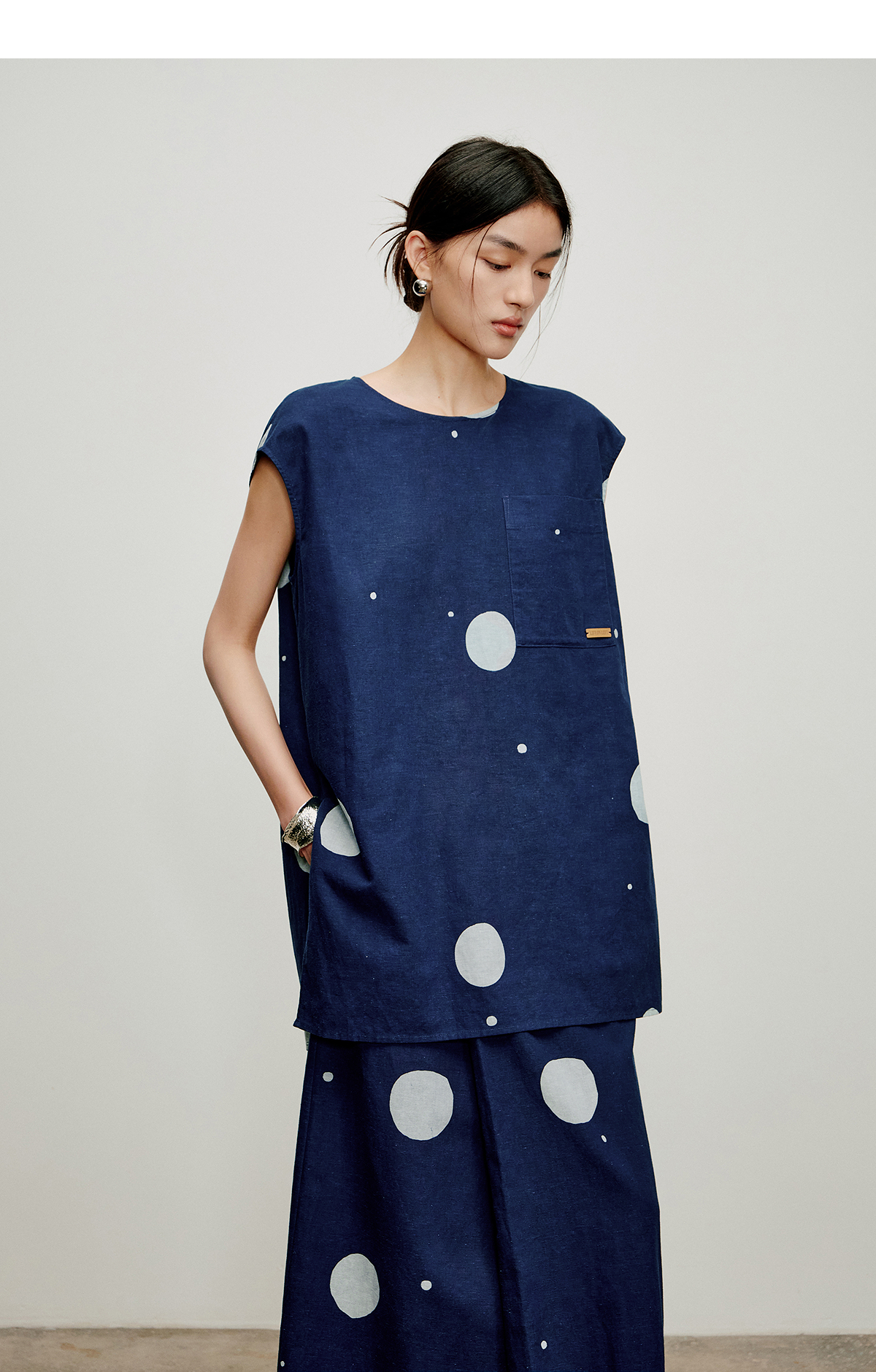 【林栖设计小店】明月疏星|手钉皮革章蓝印花布夏新款优雅吊带背心1962181