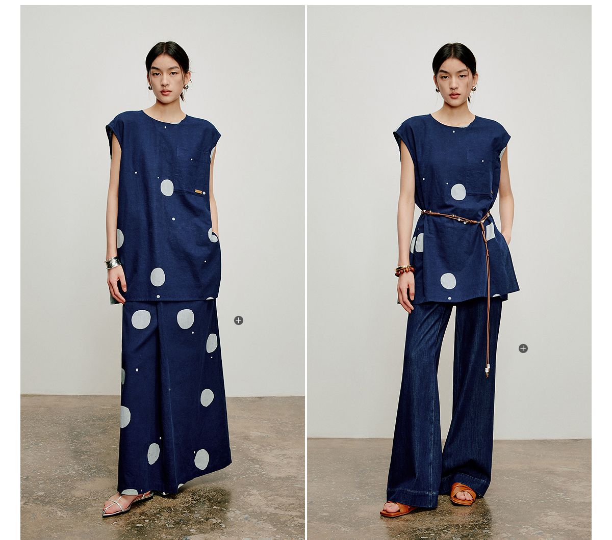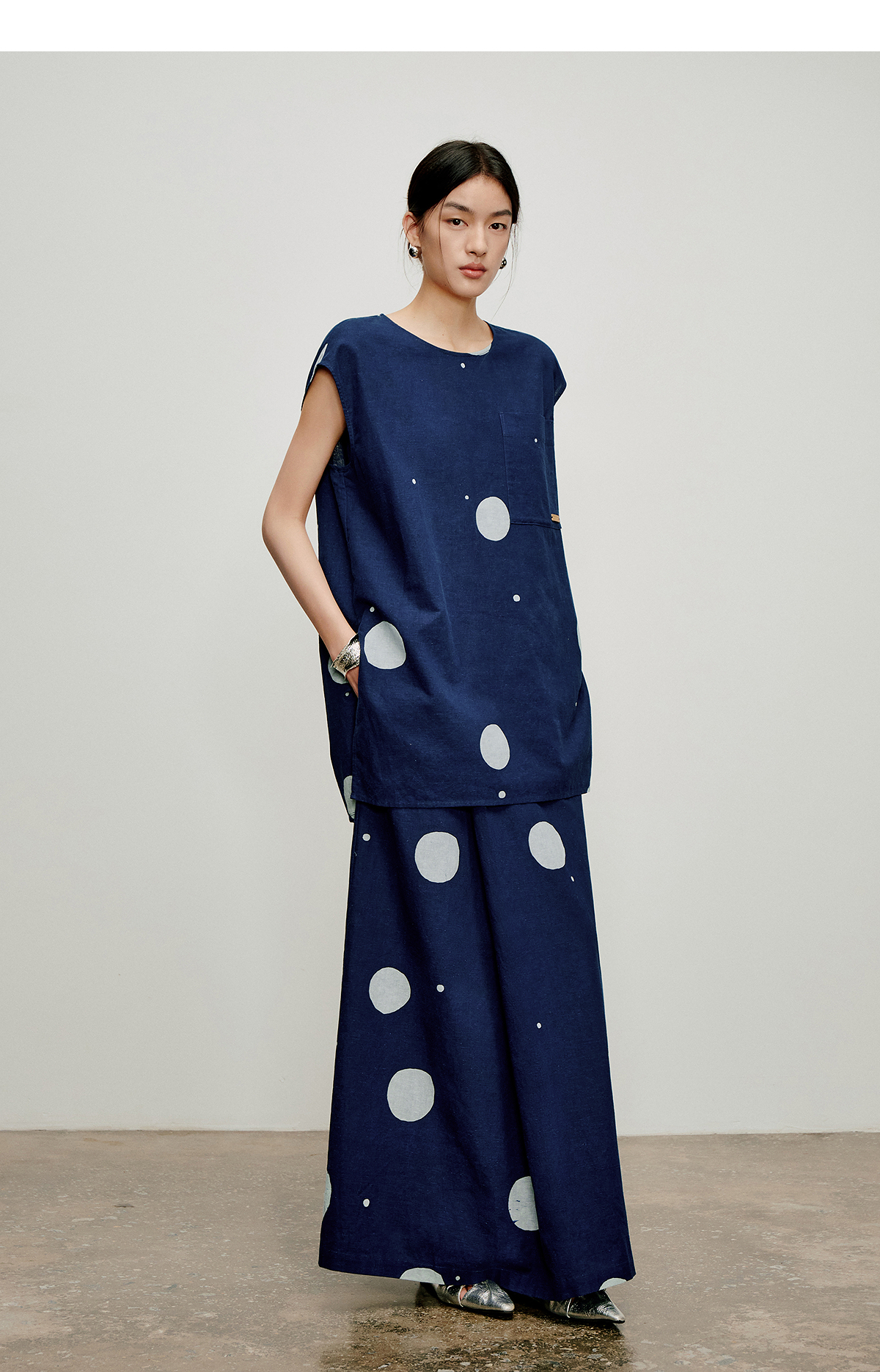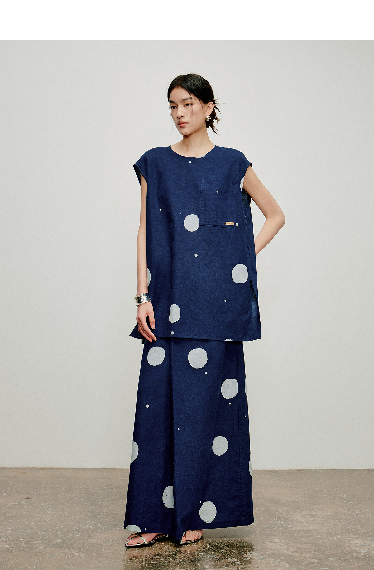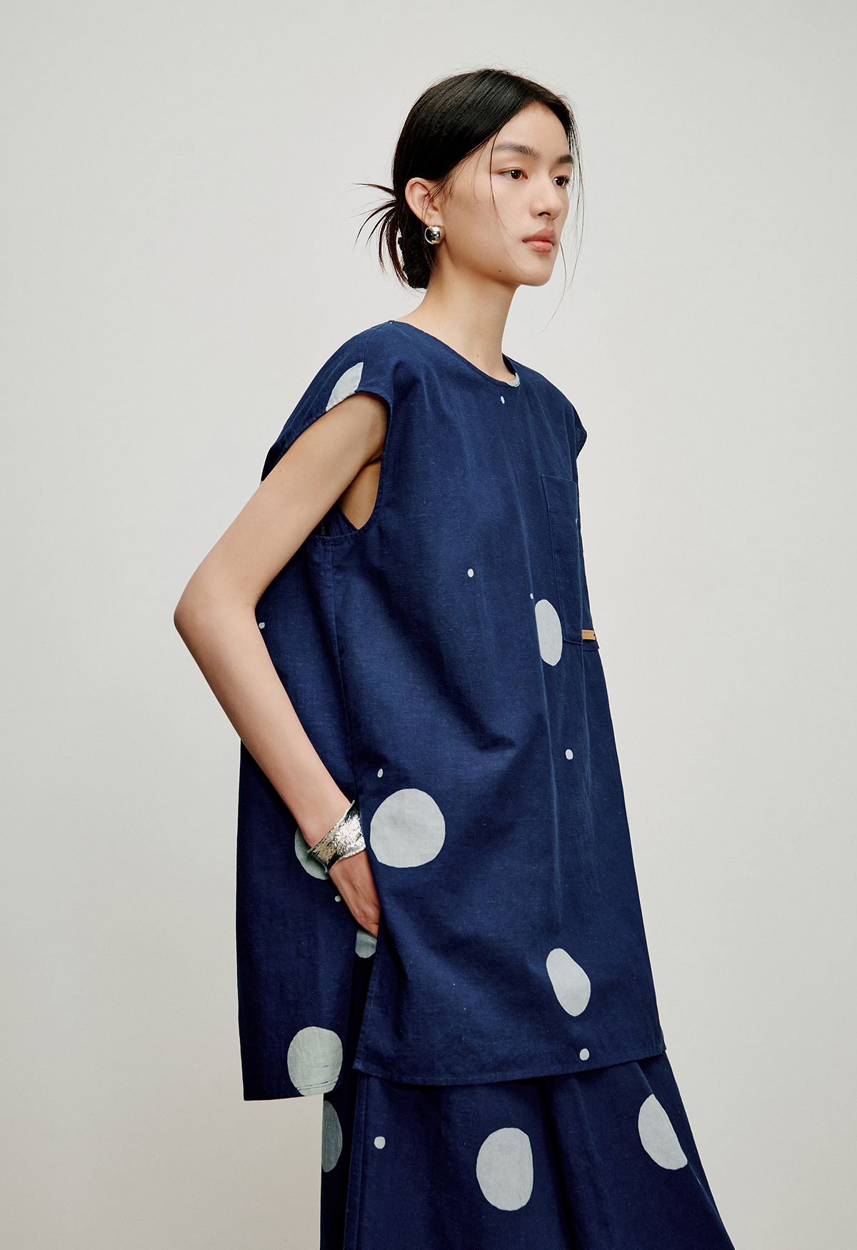 【林栖设计小店】明月疏星|手钉皮革章蓝印花布夏新款优雅吊带背心1962181