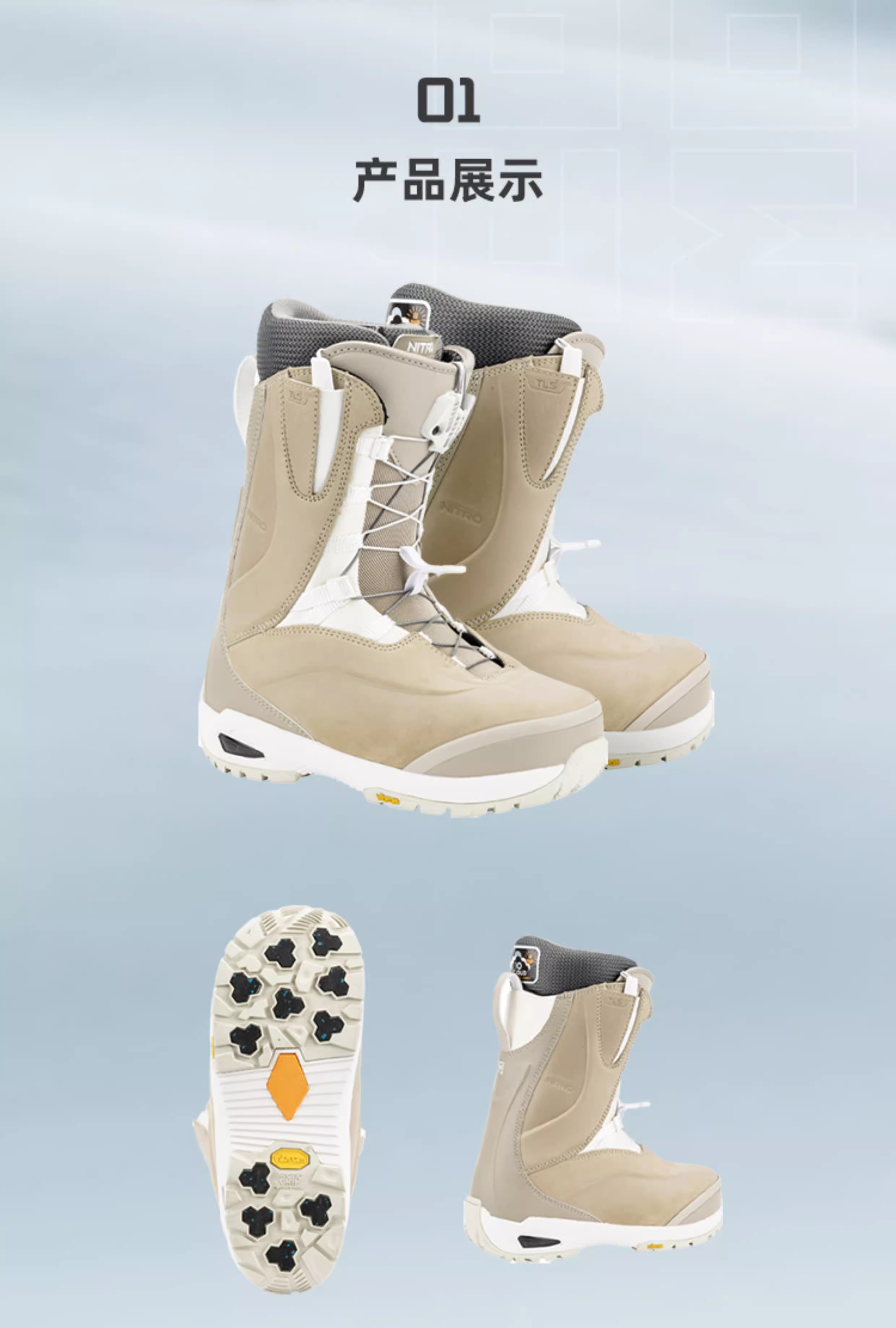 冷山雪具NITRO单板滑雪鞋尼卓BIANCA滑雪靴全能保暖防水女款2526