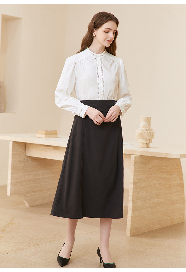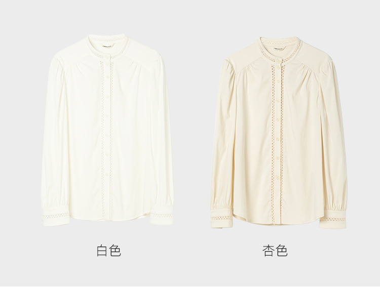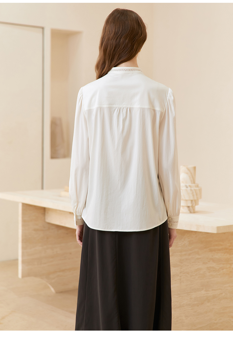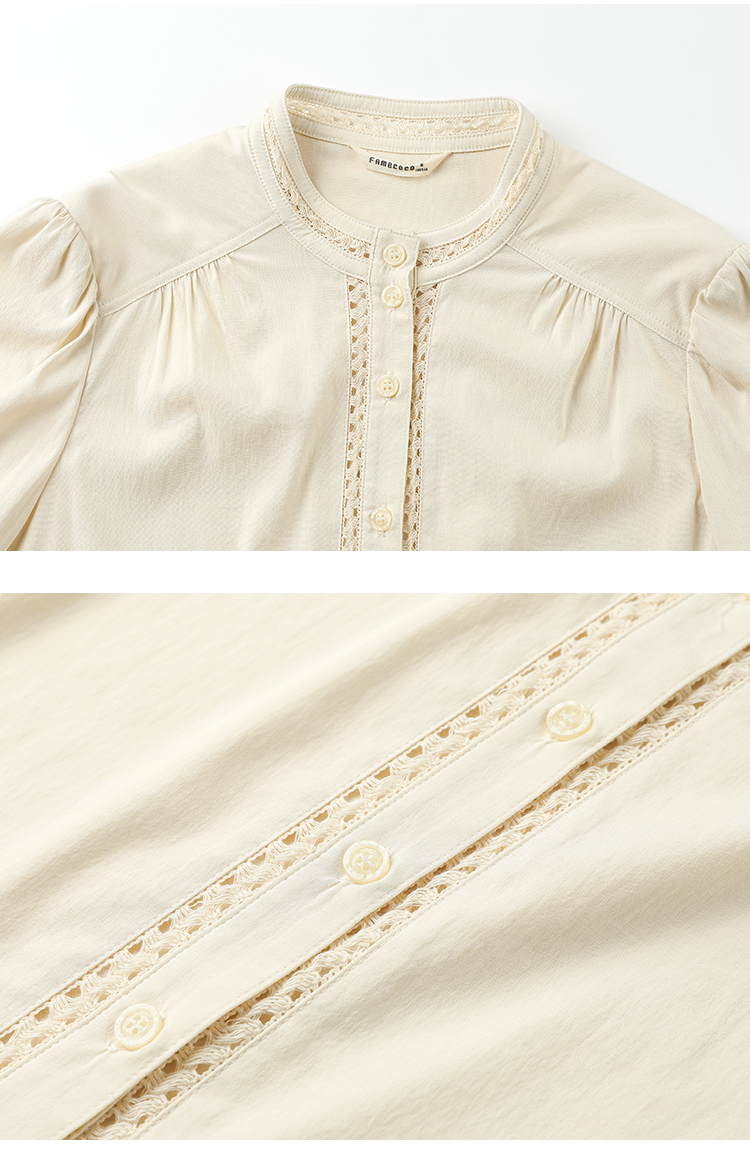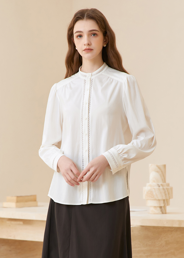 famecoco立领正肩设计感白衬衫女士优雅小众开身衬衣FAC1BH023