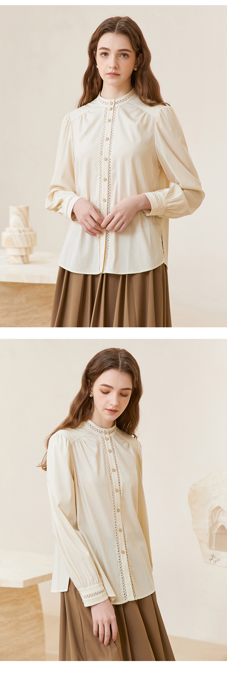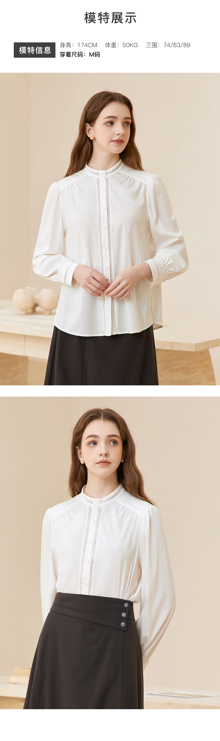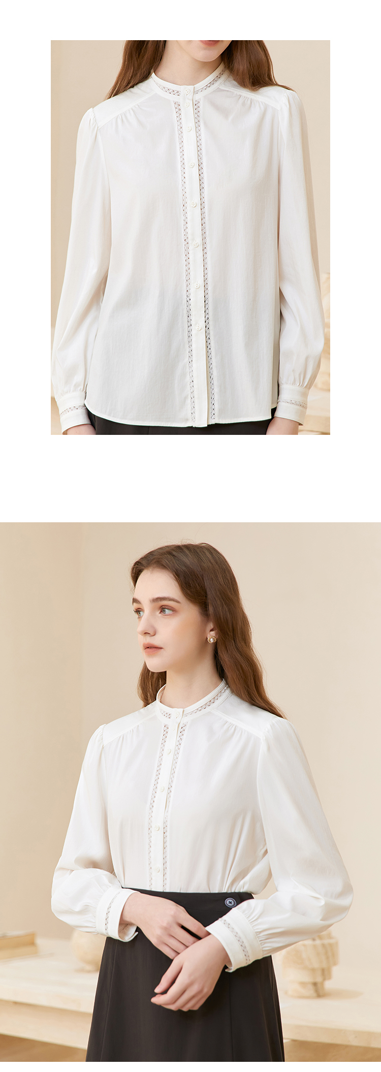 famecoco立领正肩设计感白衬衫女士优雅小众开身衬衣FAC1BH023