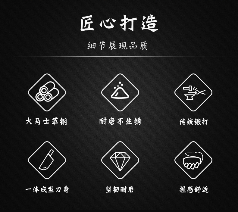 温馨提示:菜刀7天内如果说您使用了之后感觉不够锋利、不好用、不满意,直接退!30天质量问题包换!