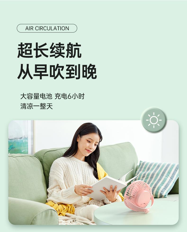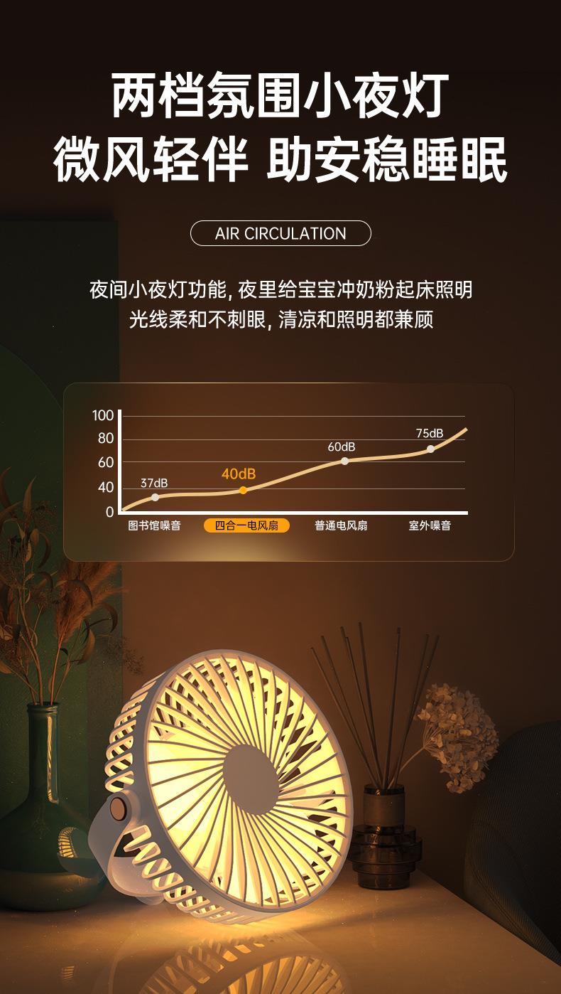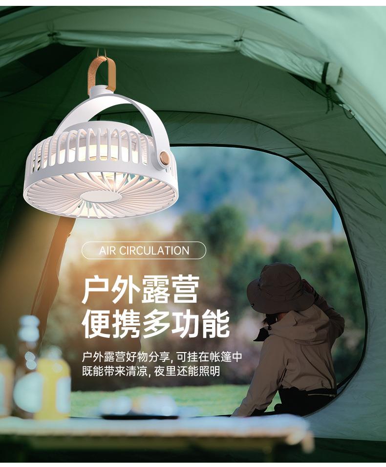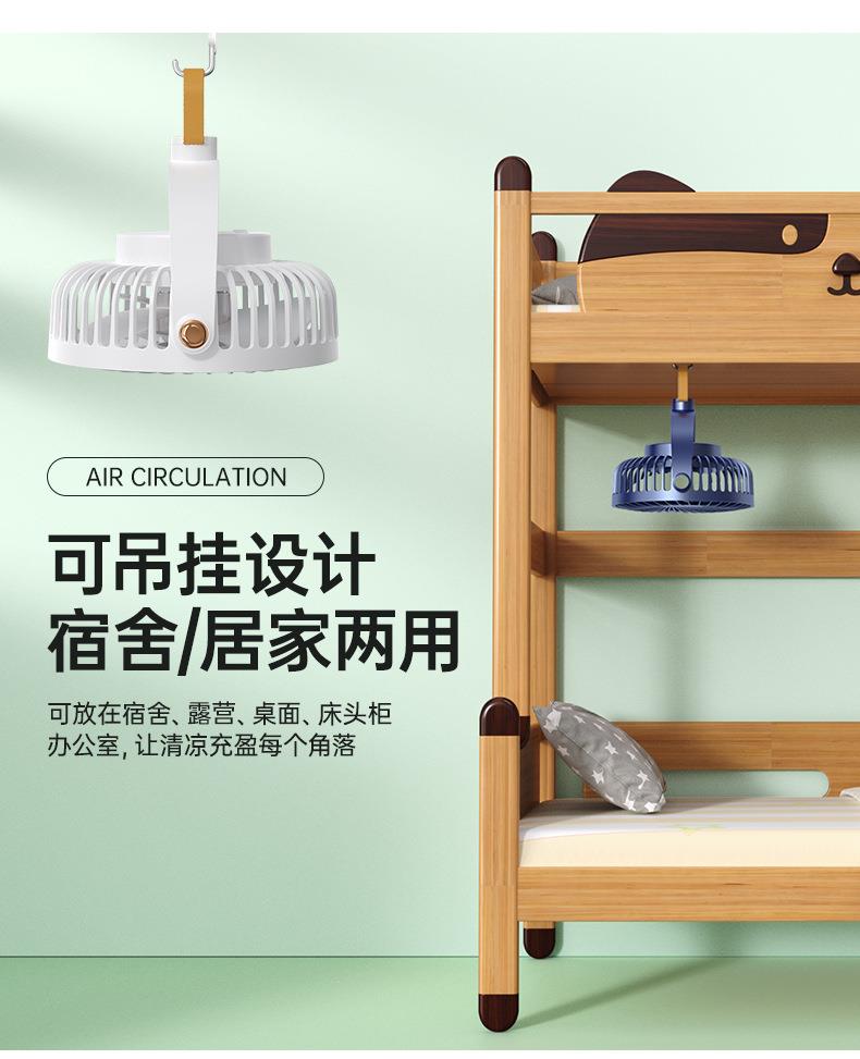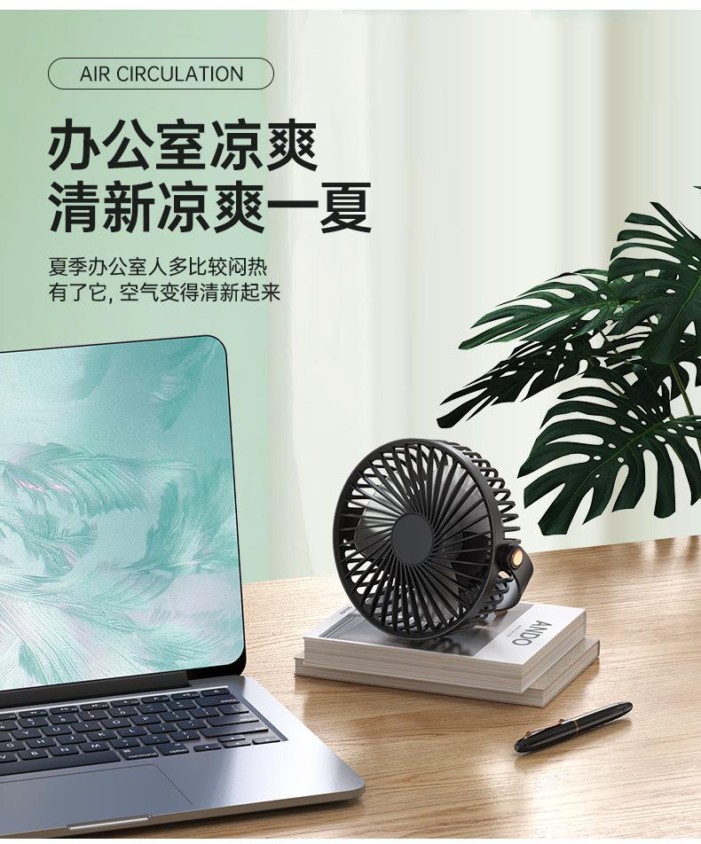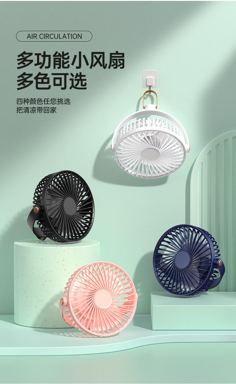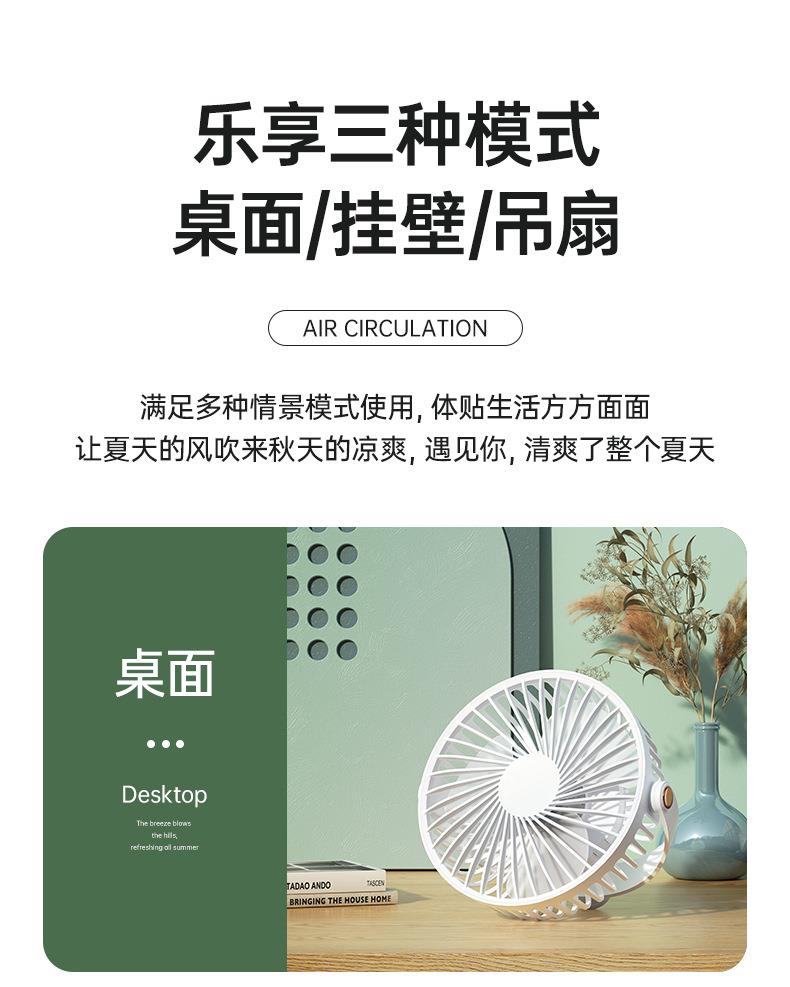 6月新款USB充电小风扇家用吊扇带小夜灯便携式迷你桌面电风扇