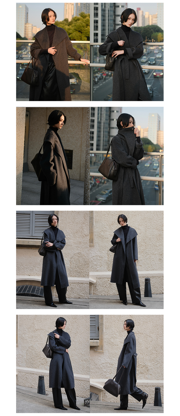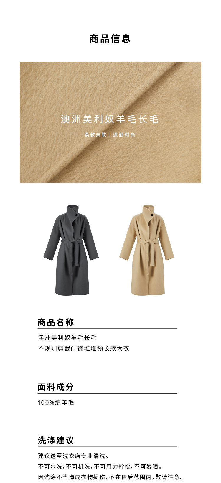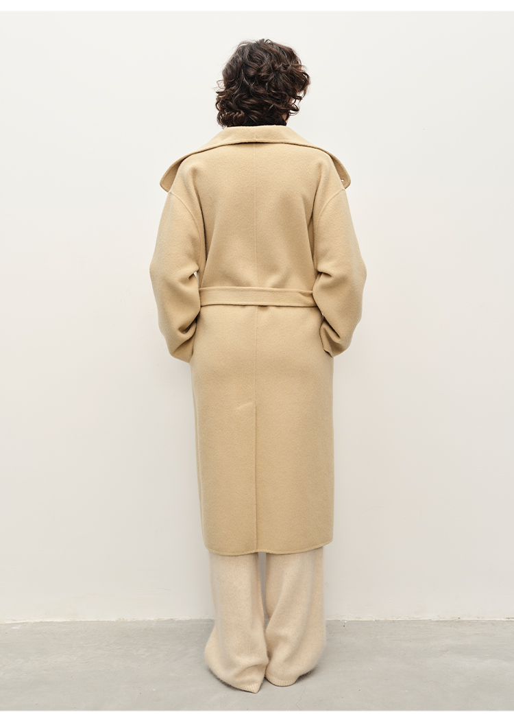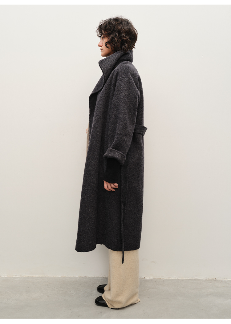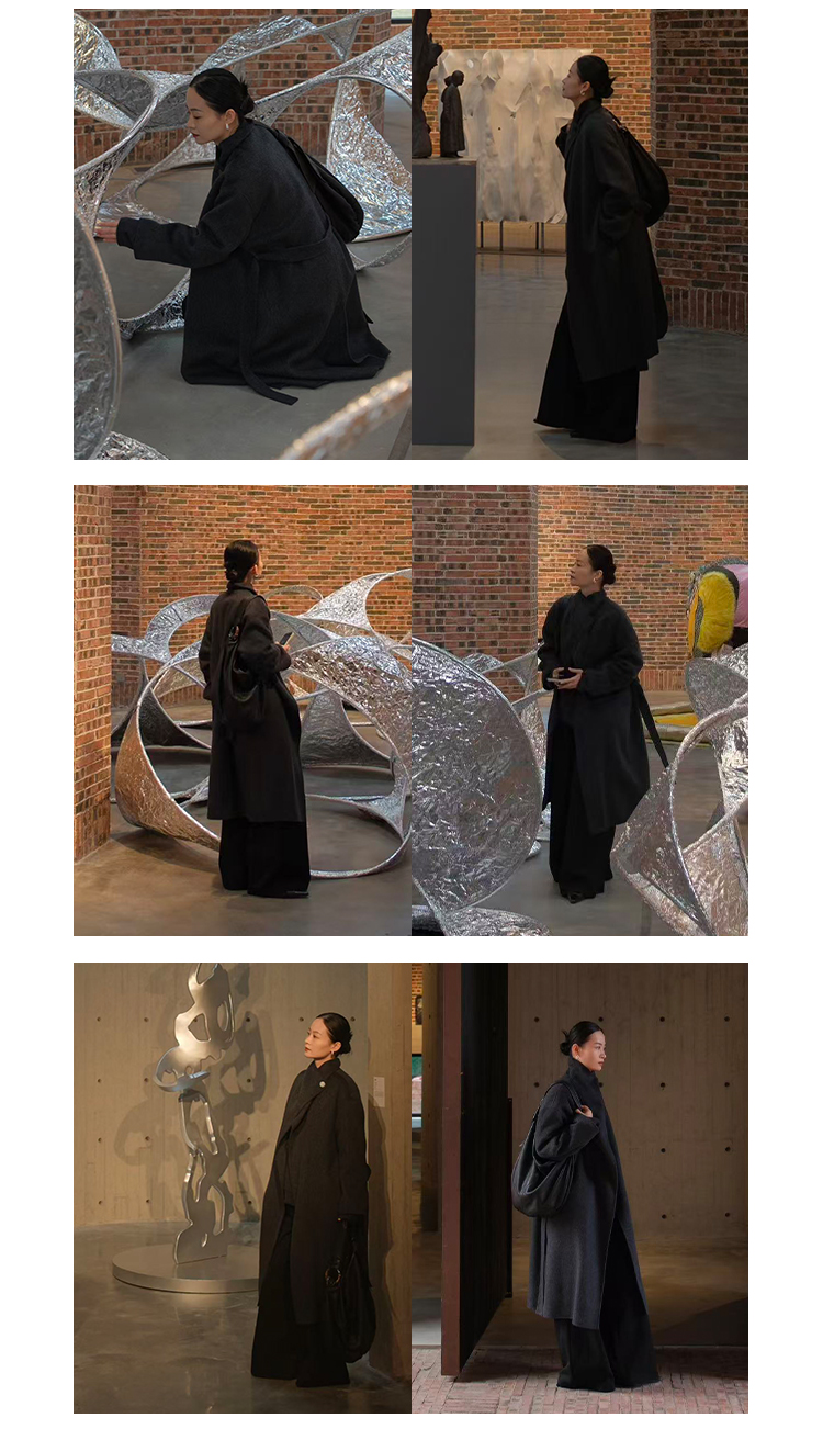 HIDEMI 澳洲美利奴羊毛长毛不规则剪裁门襟堆堆领长款大衣