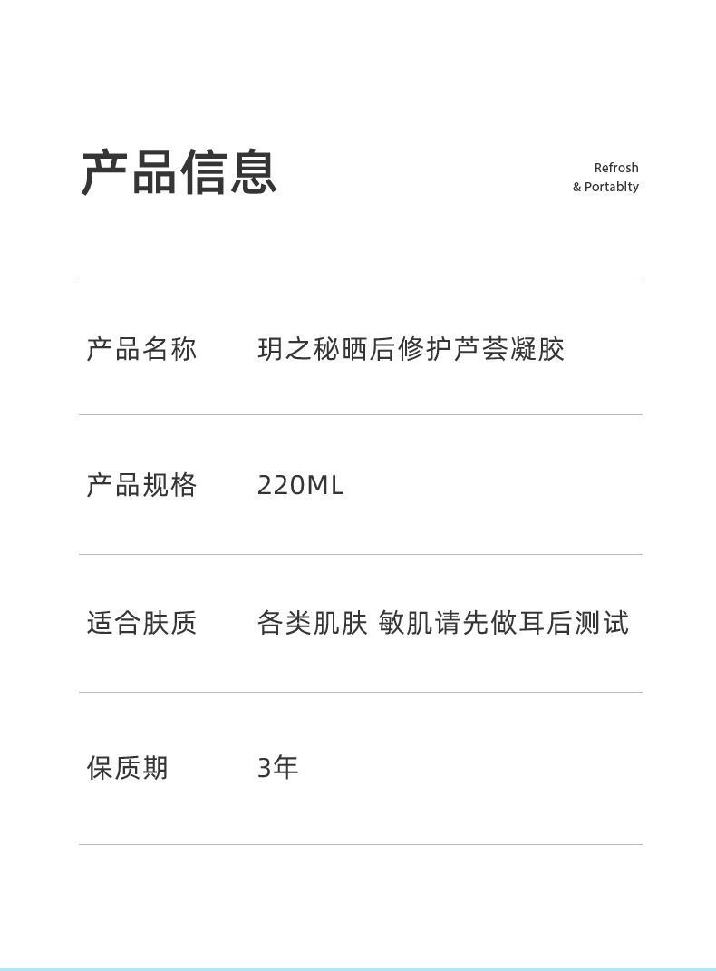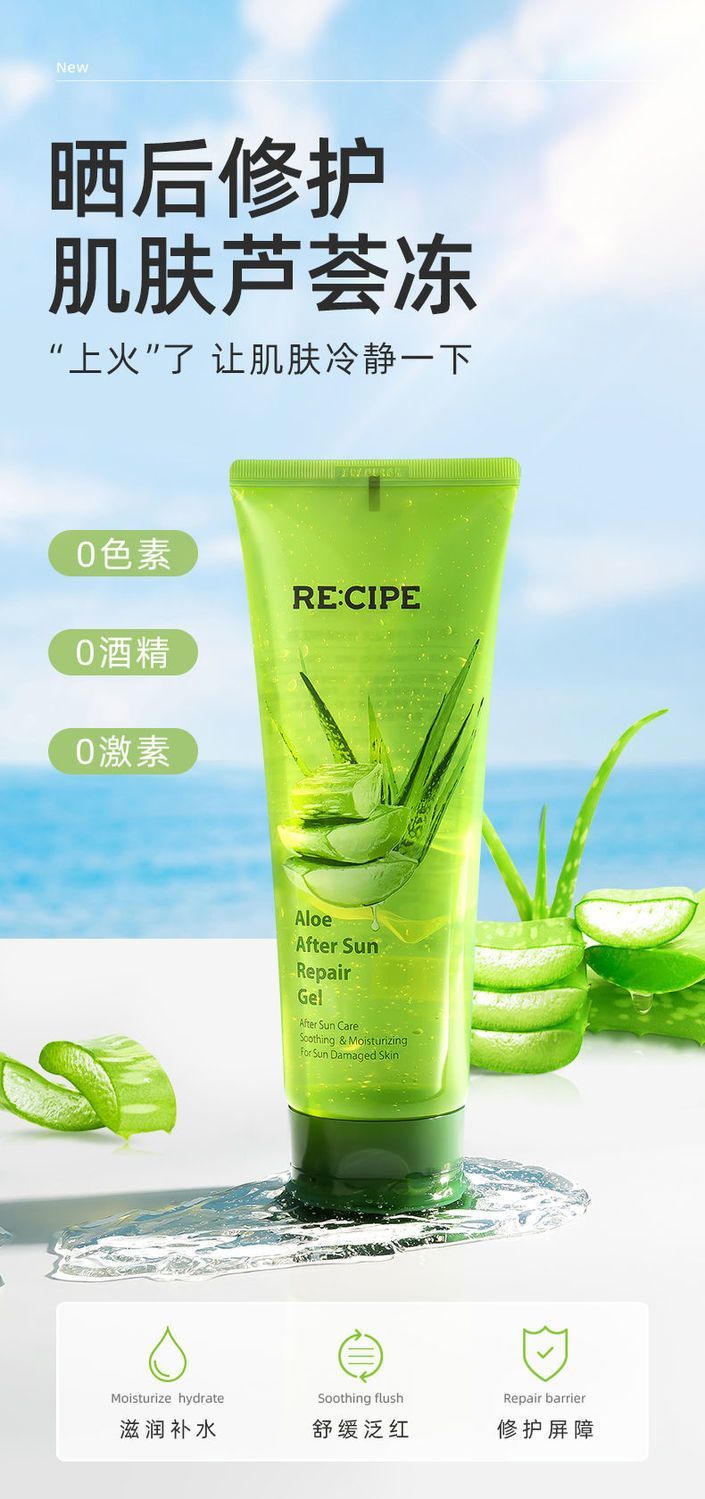 【爆款超低价预售 急单慎拍】玥之秘RECIPE晒后修护芦荟胶220ml凝胶补水保湿凝胶祛痘印舒缓女