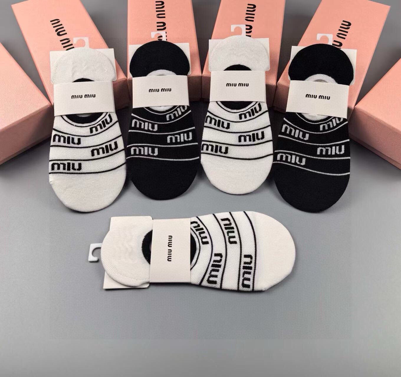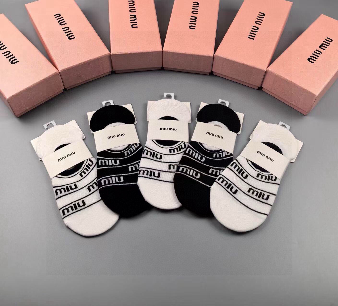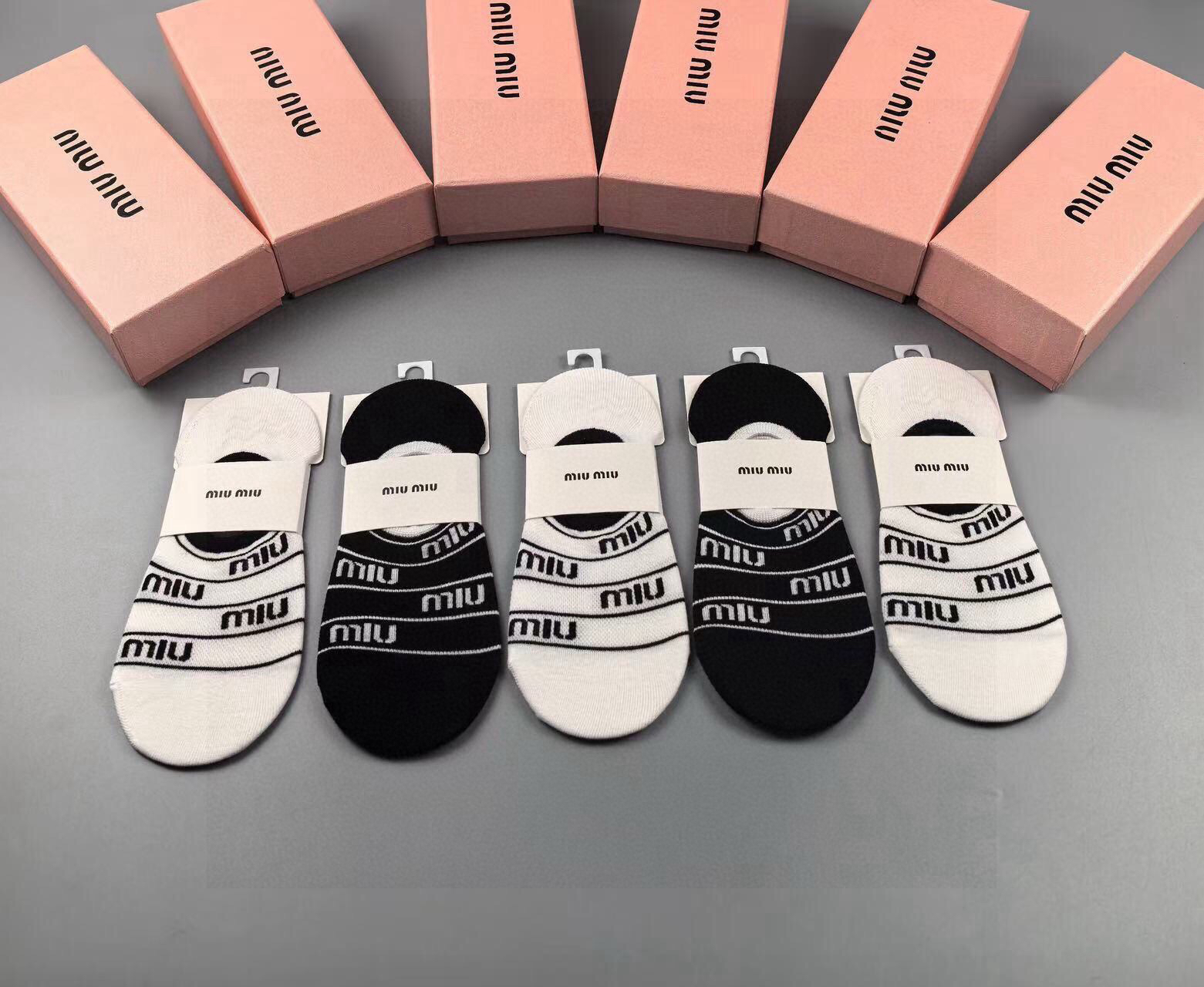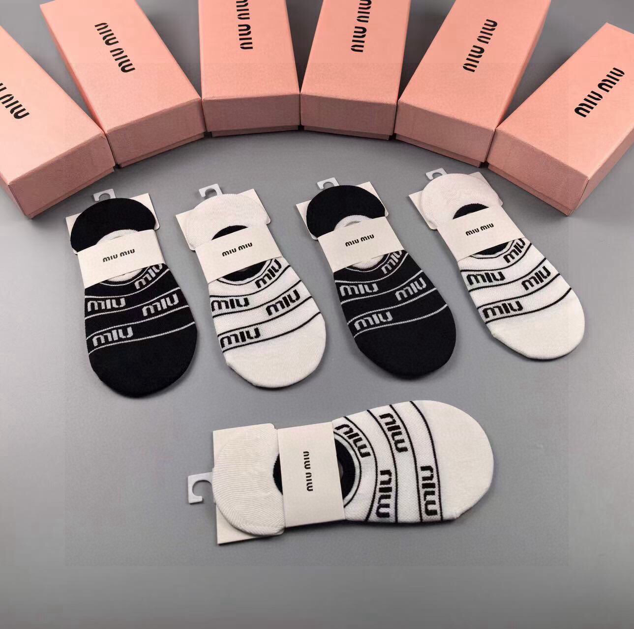 秋冬特惠💰130 缪缪袜子 新品女款隐形袜子【一盒五双】提花经典字母标志,纯棉材质,超舒适超美腻 大牌出街,潮人必备 超好搭