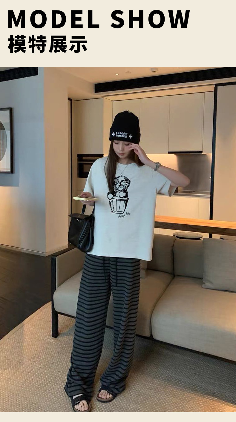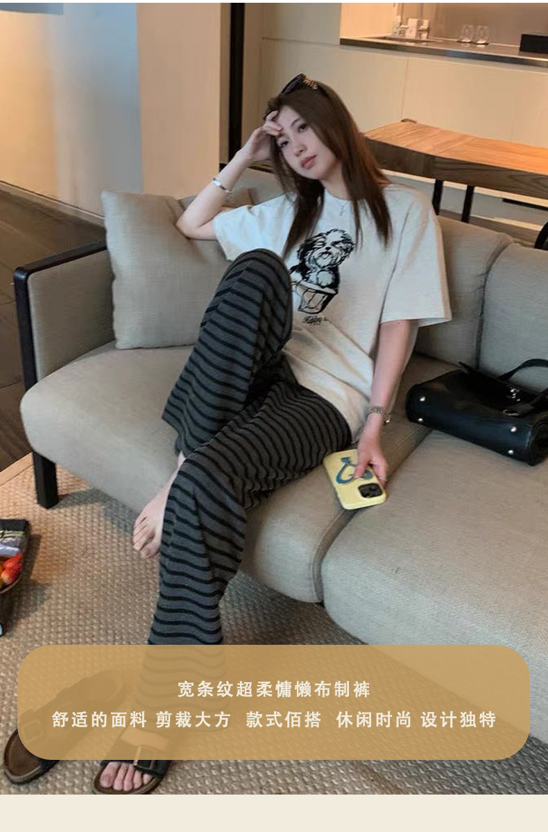 宽条纹超柔慵懒布制裤-纪念日百货门店同款167046537