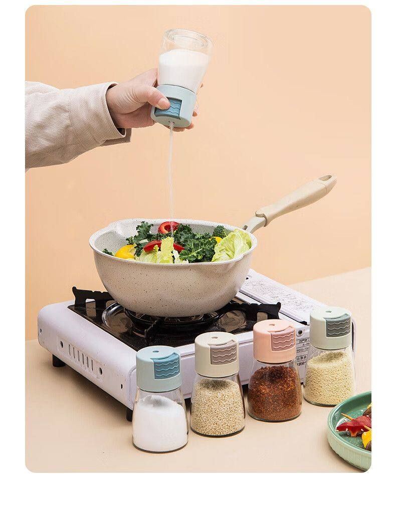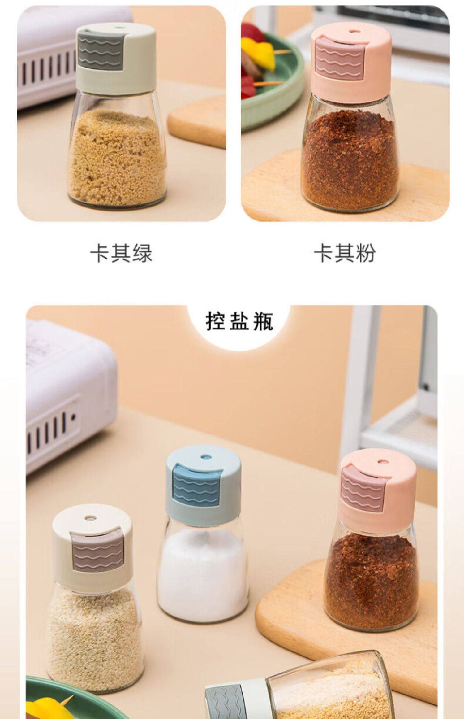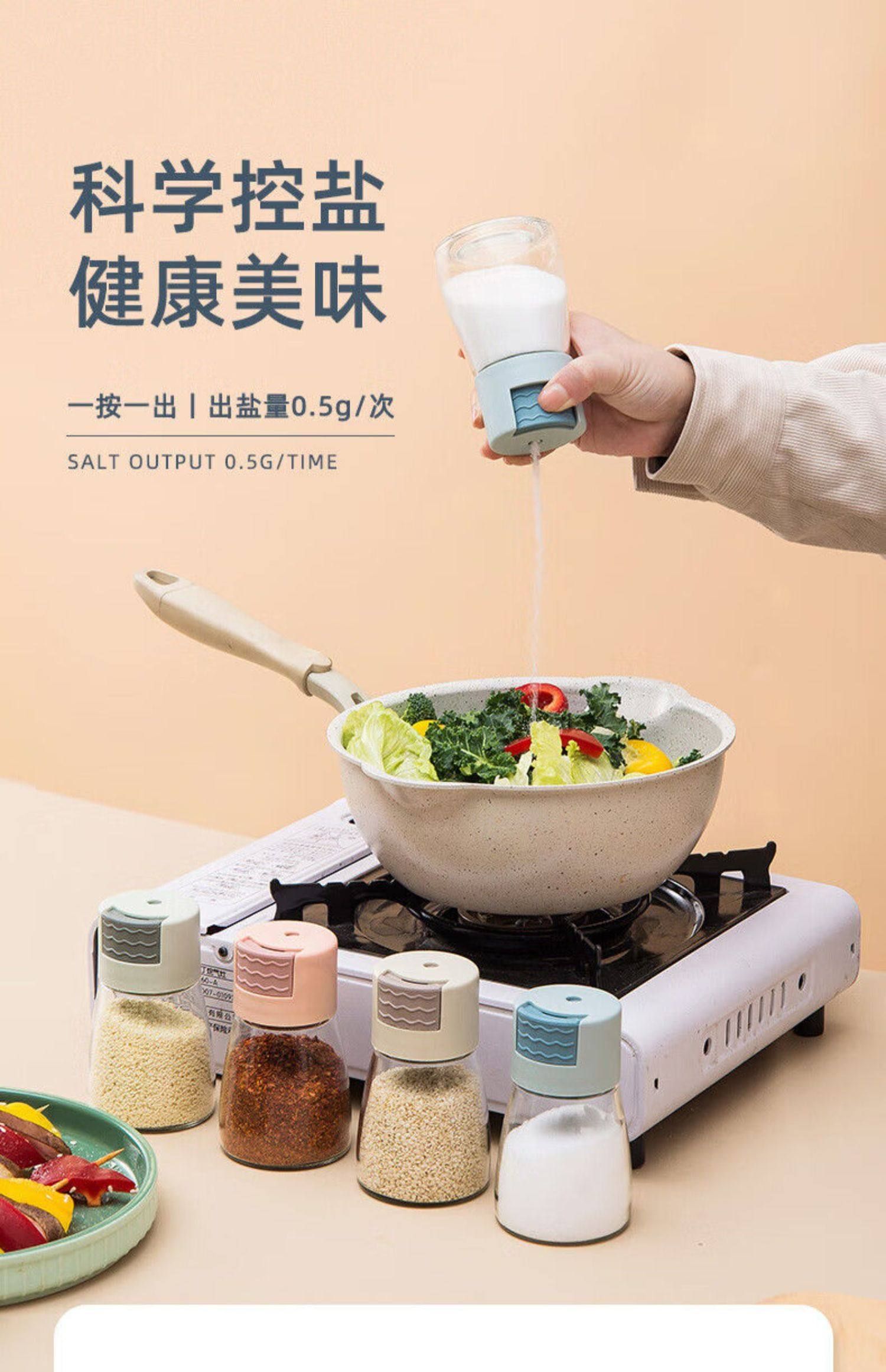控按压罐式味精调料防潮佐料盒厨房玻璃密封调味罐定量家用盐瓶