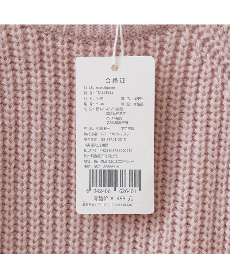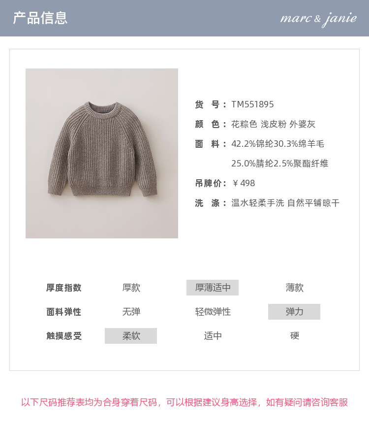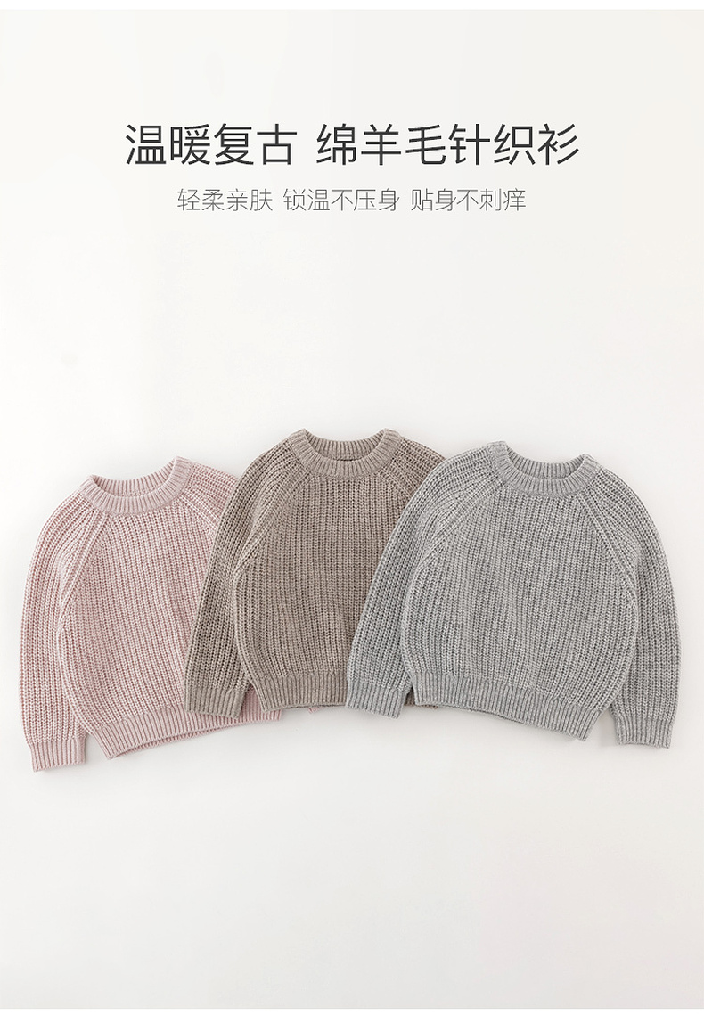 马克珍妮男女童温暖复古绵羊毛针织衫2025年秋冬新款551895