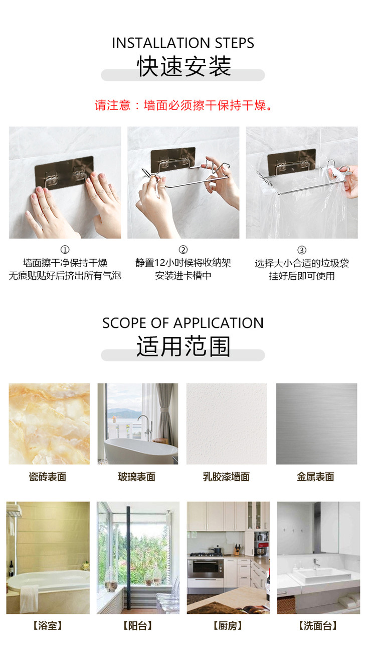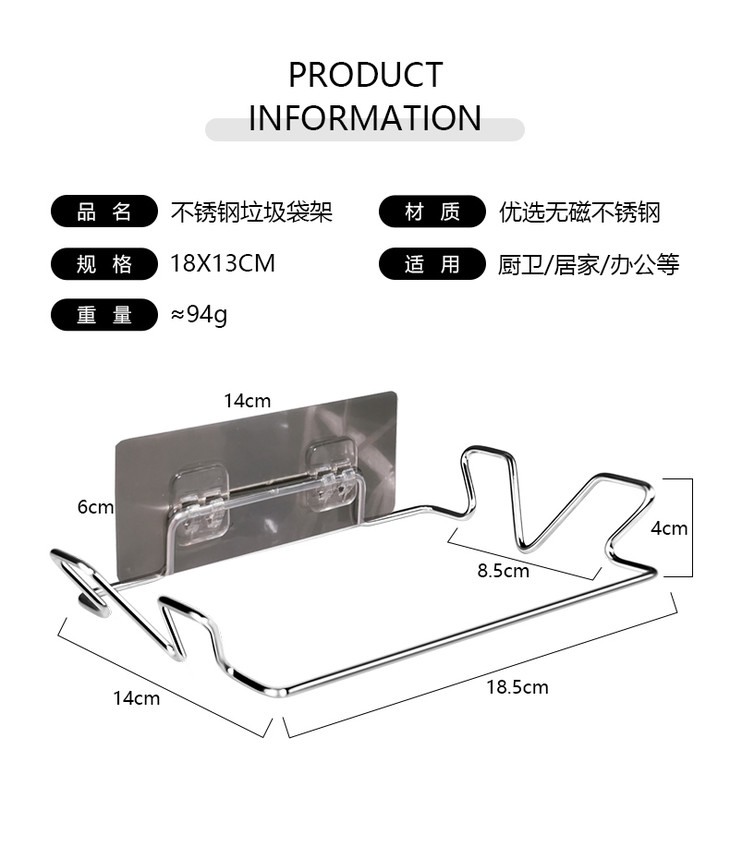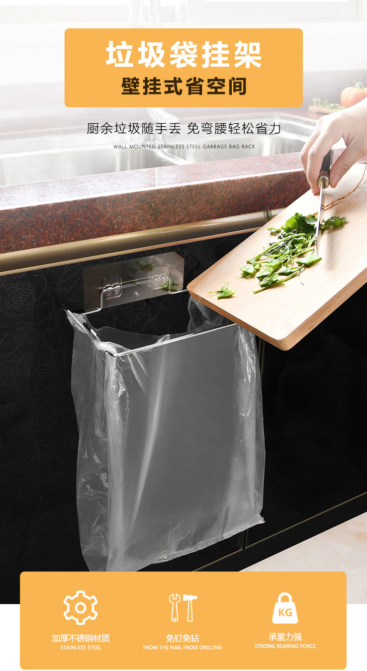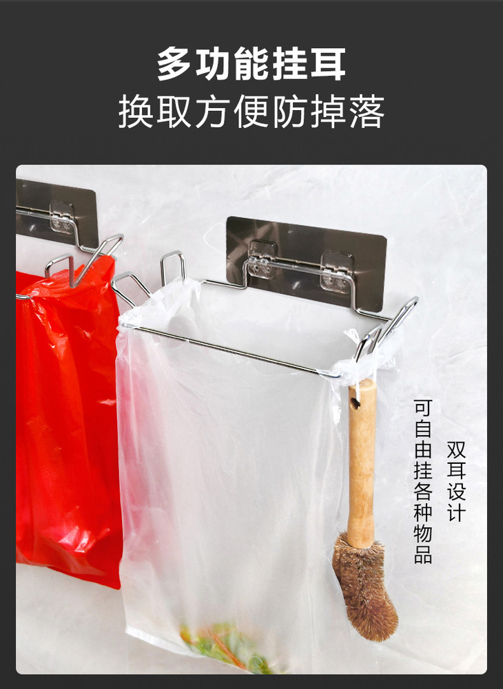 厨房不锈钢垃圾袋架 支架收纳挂钩橱柜挂式支撑架子2.59