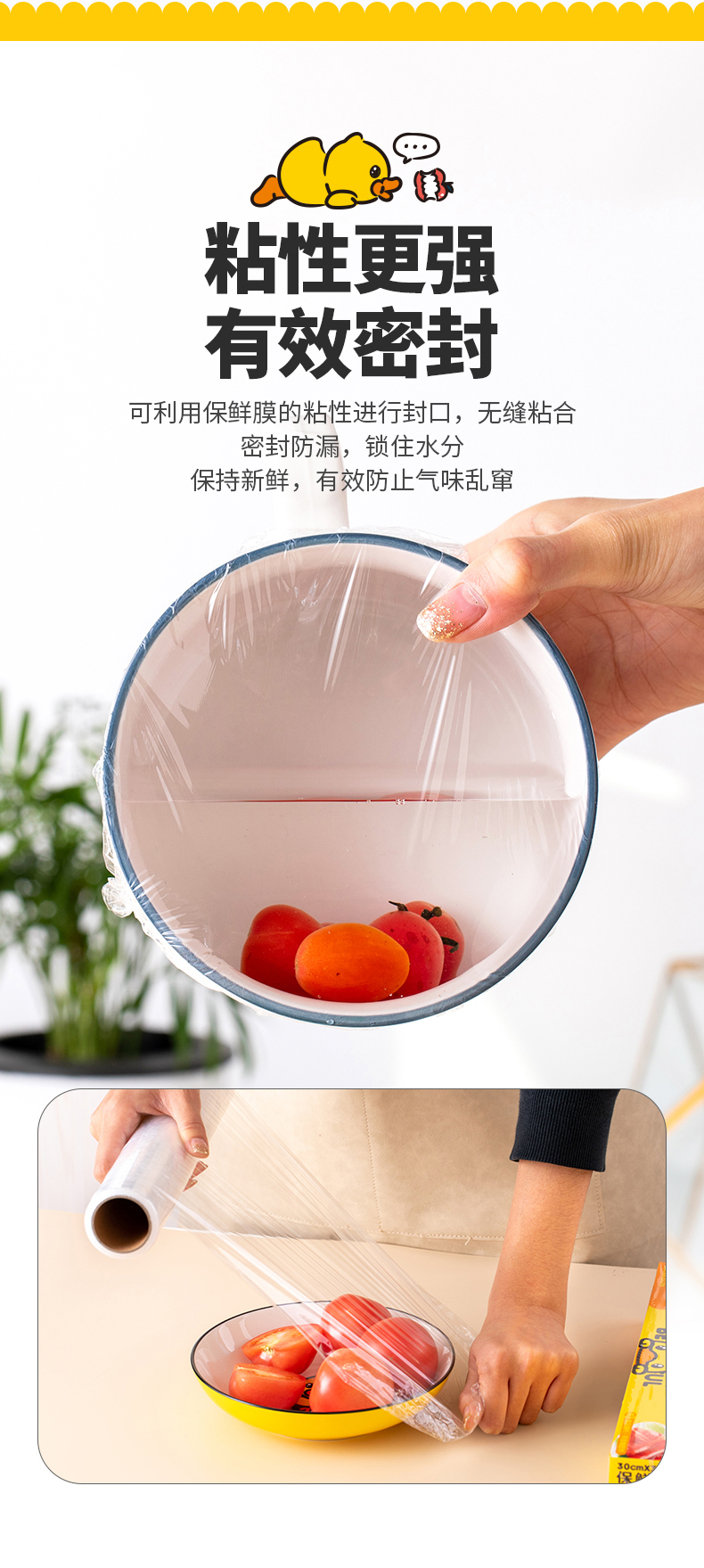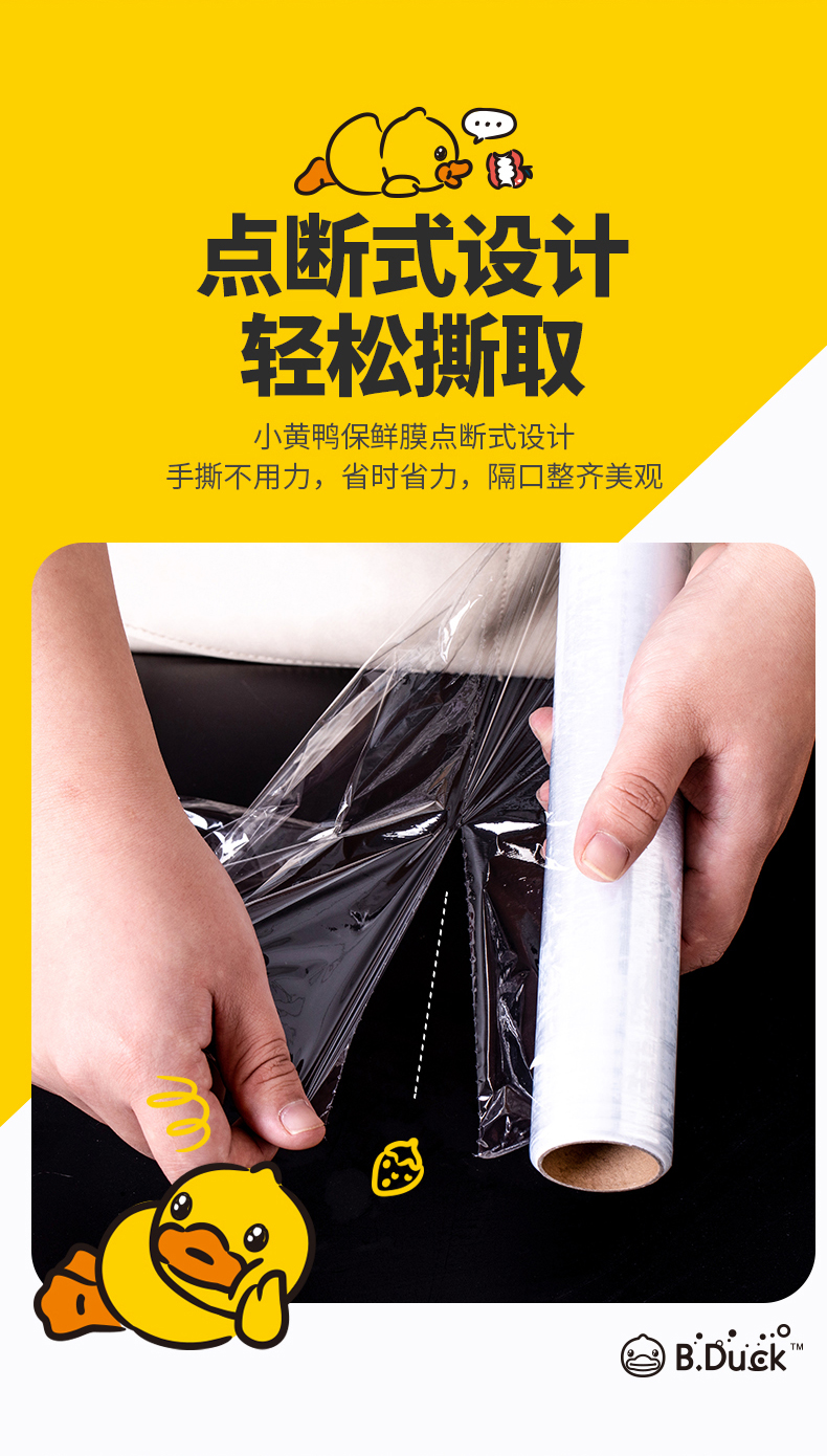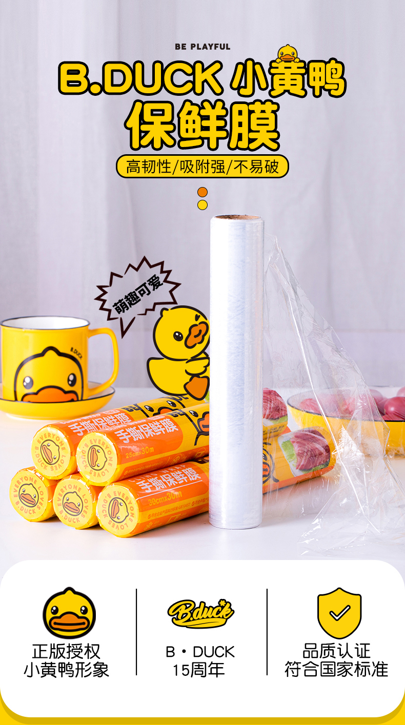 B.Duck小黄鸭一次性保鲜膜粘性升级易手撕30cm*60米 JH0300盒装