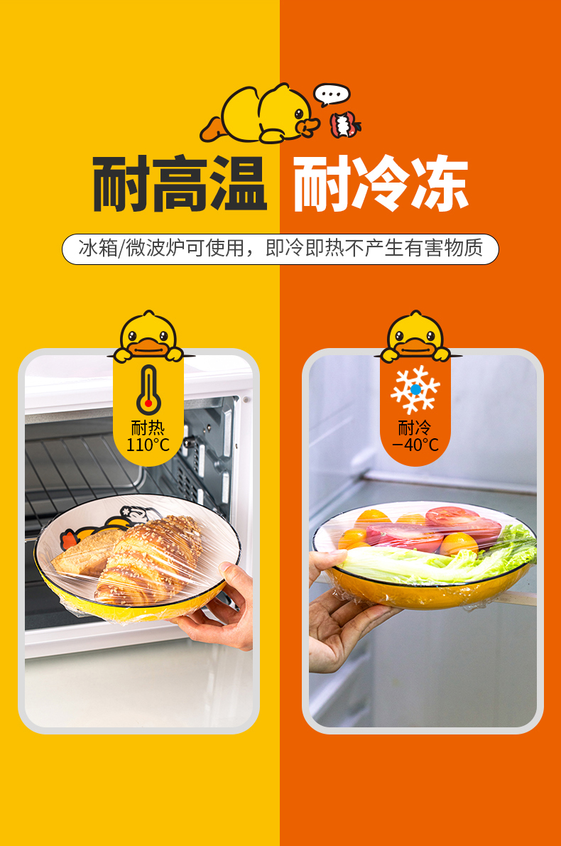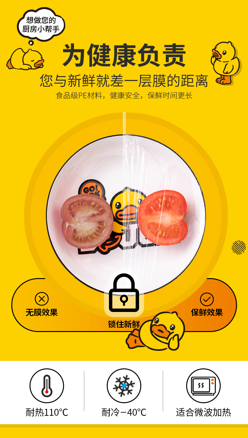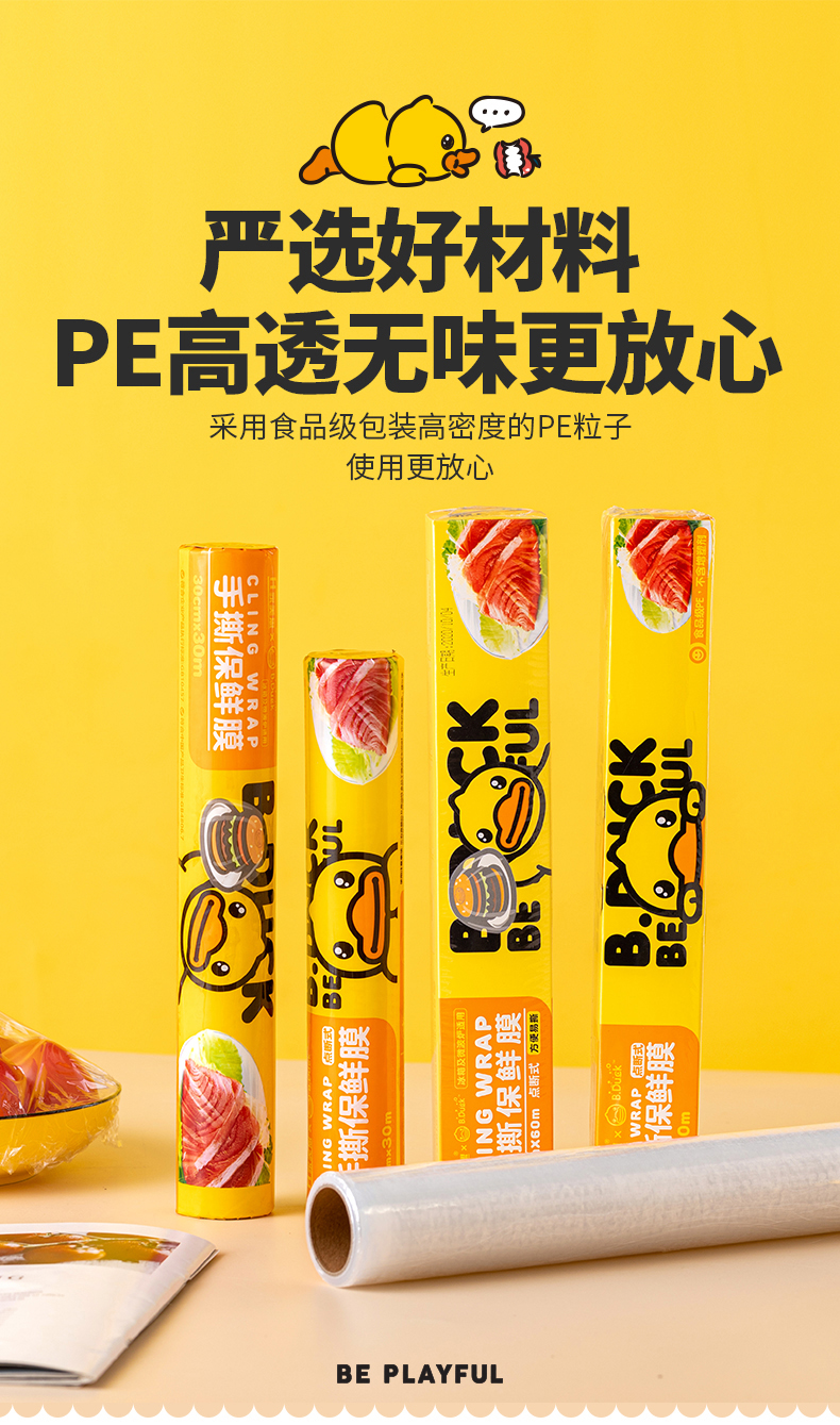 B.Duck小黄鸭一次性保鲜膜粘性升级易手撕30cm*60米 JH0300盒装