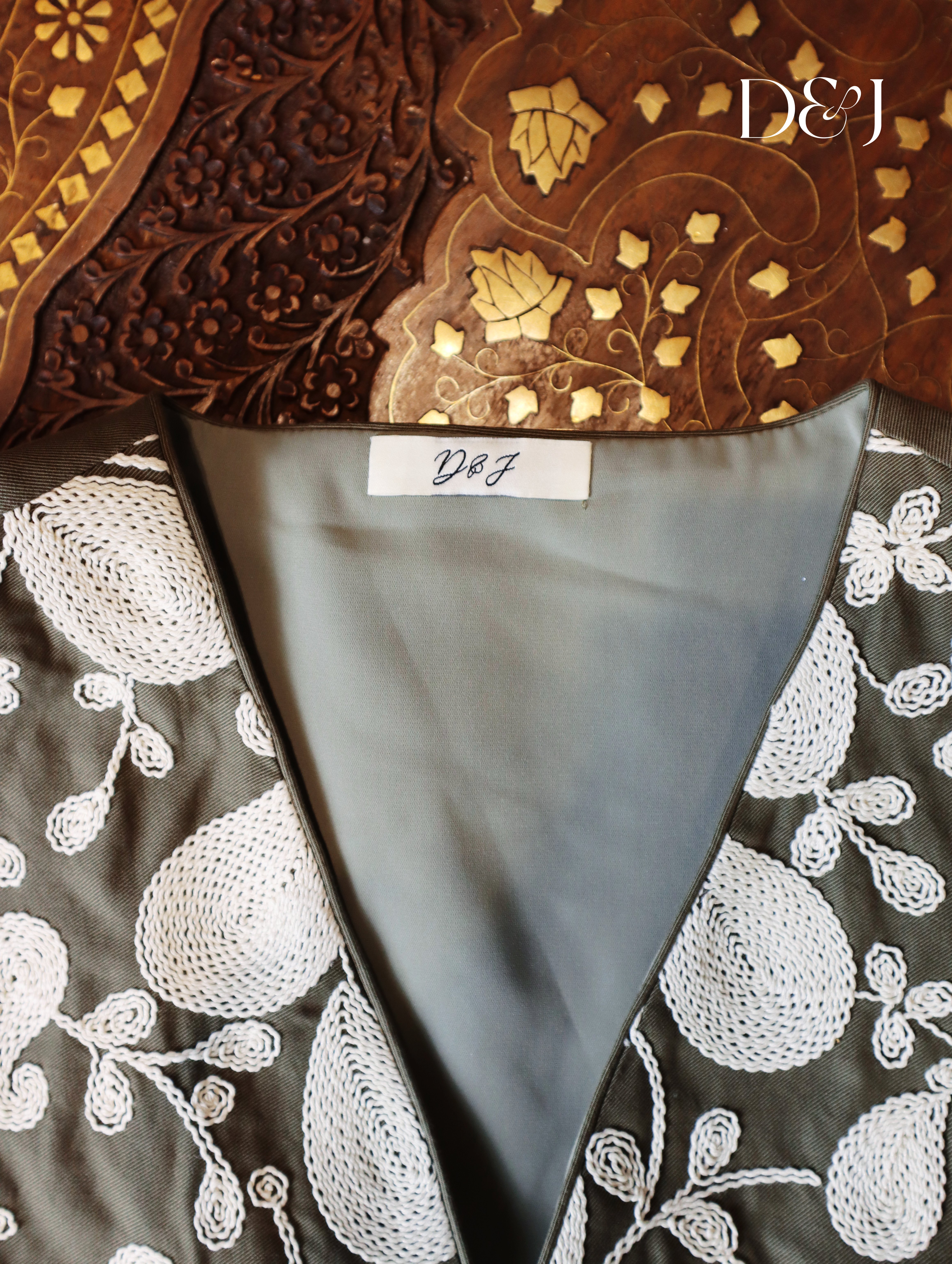 本次系列Manisha借鉴了中国服饰的设计特色,结合D&、高定面料,加入印度特色的刺绣方式,创造出精美绝伦的新中式款式,不分年龄段的版型,精致又日常。