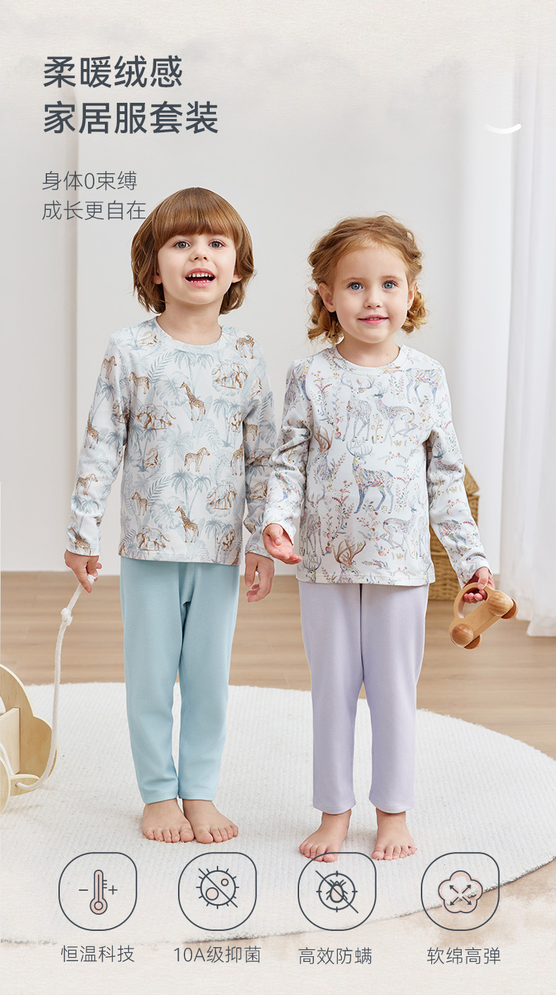 【2025秋冬新品】i-baby×Outlast抑菌针织轻暖圆领恒温儿童家居服套装