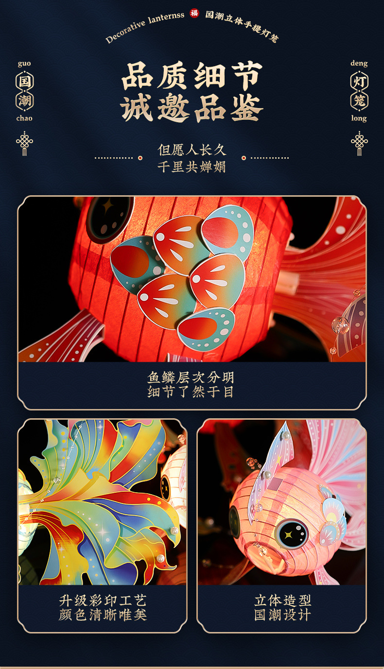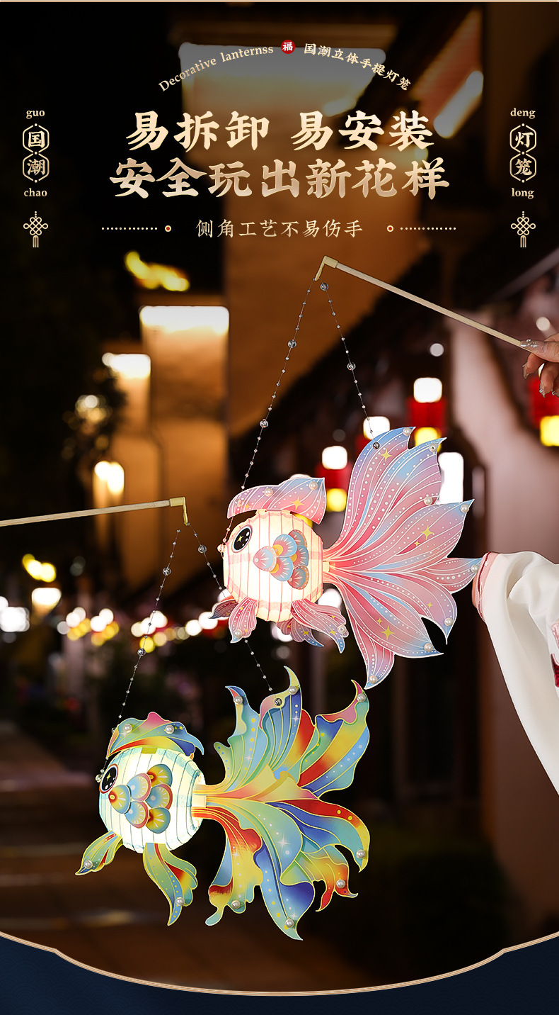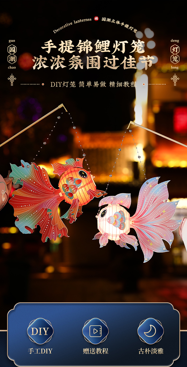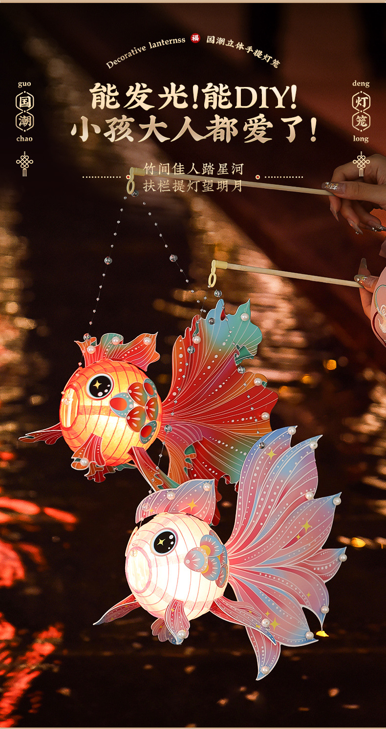 【锦鲤讨喜的花灯 手提不勒手】春节金鱼灯笼手工DIY 材料包 儿童手提宫灯挂饰花灯