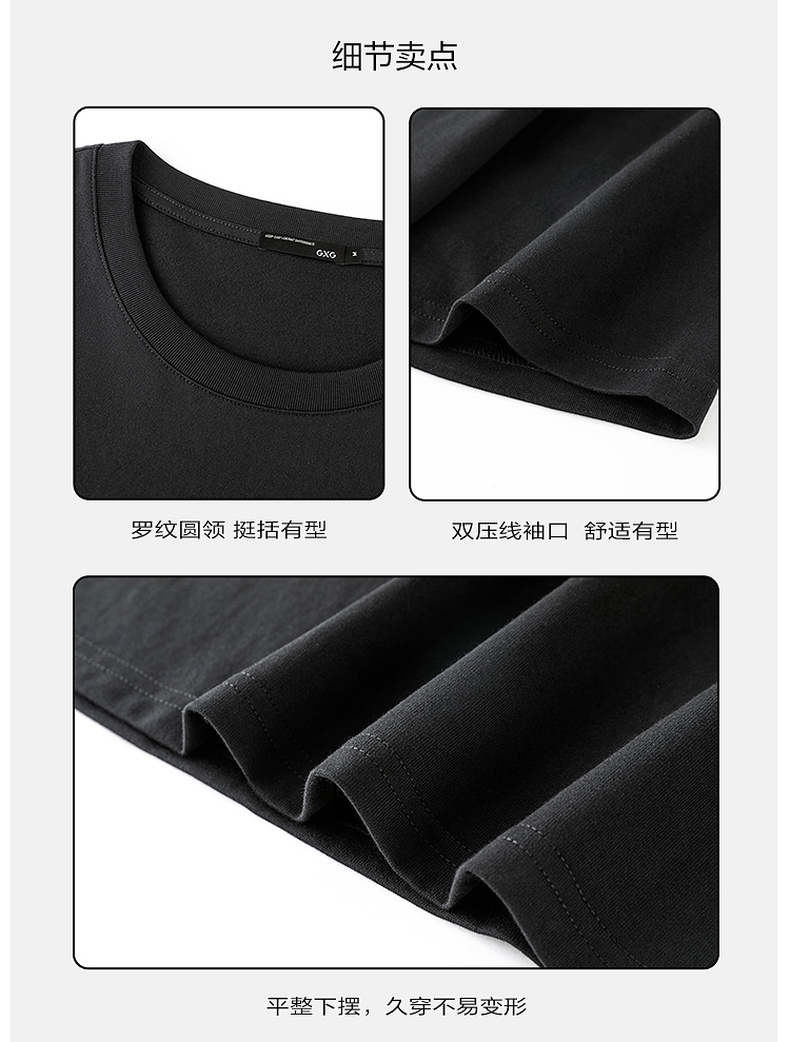 GXG男装 265g重磅字母绣花简约时尚圆领短袖T恤男士 夏季新品