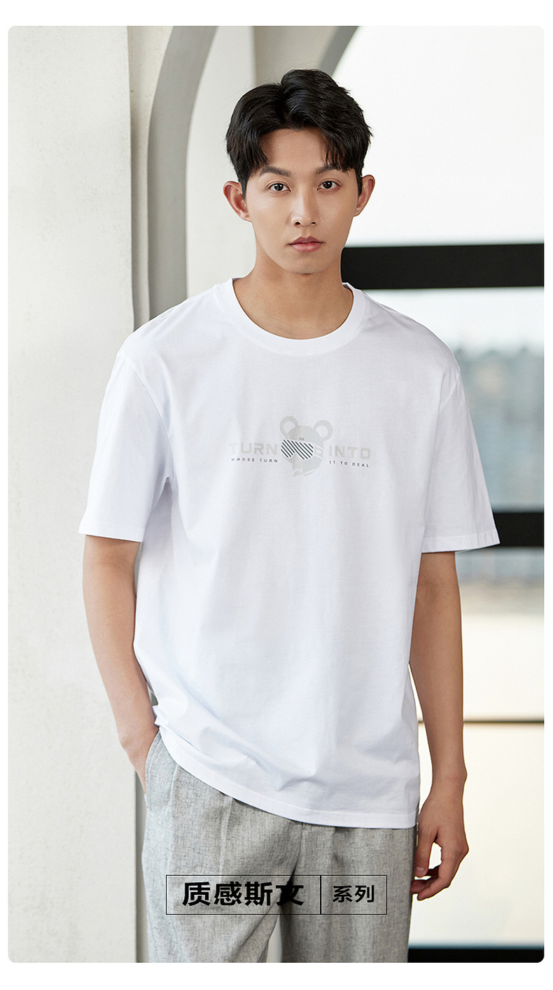 GXG男装 双色简约圆领短袖T恤时尚字母印花舒适 夏季热卖T恤