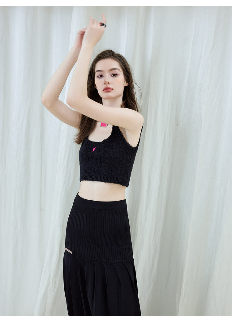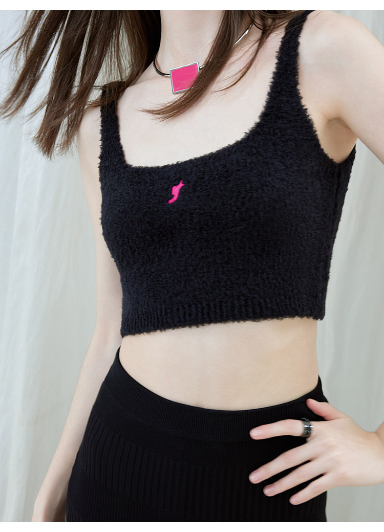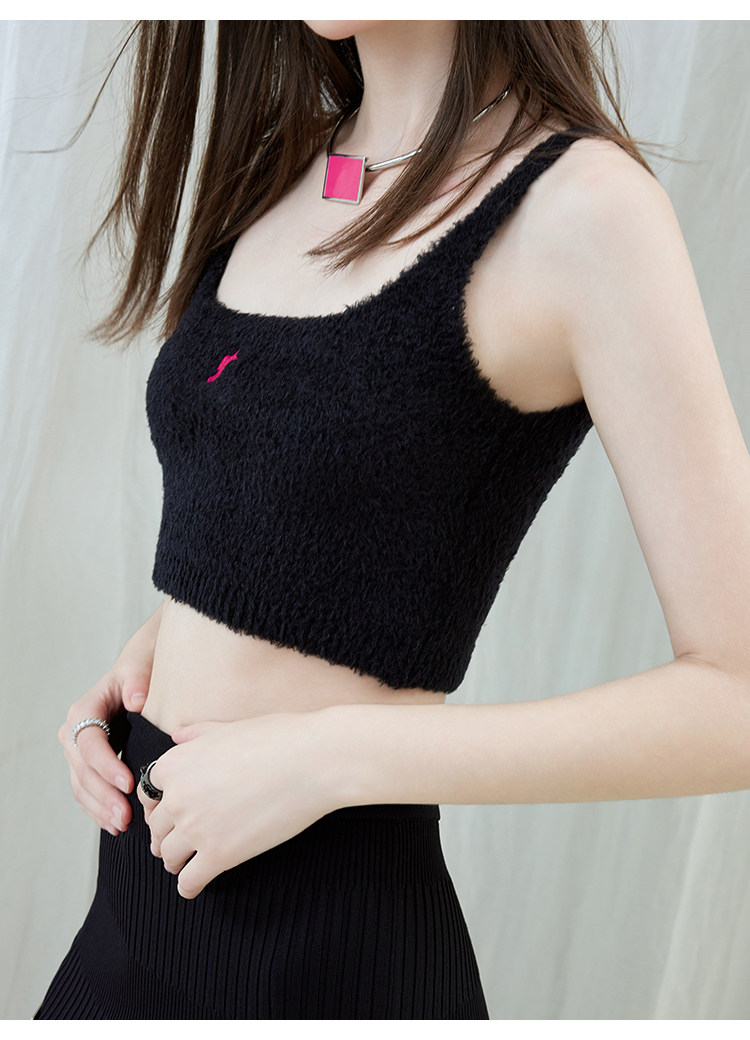 FTT FlyTheTruth『雾·欲』 黑色毛绒吊带背心女冬季美背百搭上衣