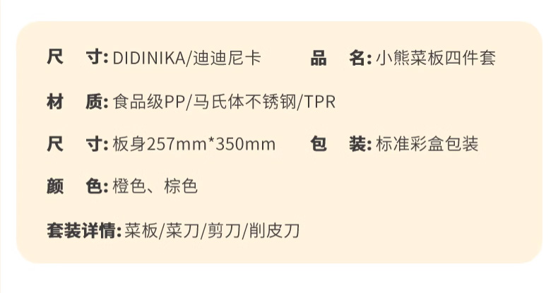 【迪迪尼卡didinika】菜板四件套、五件套 家用厨房案板砧板