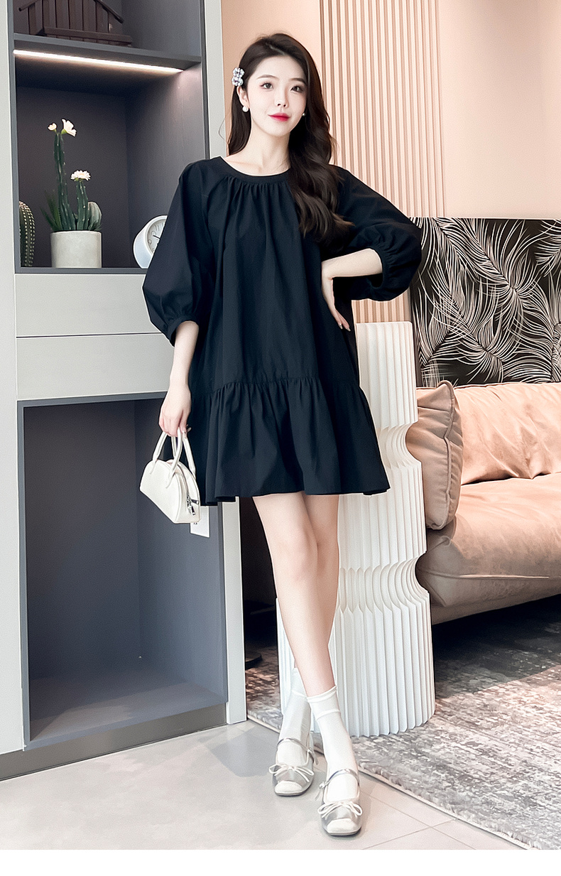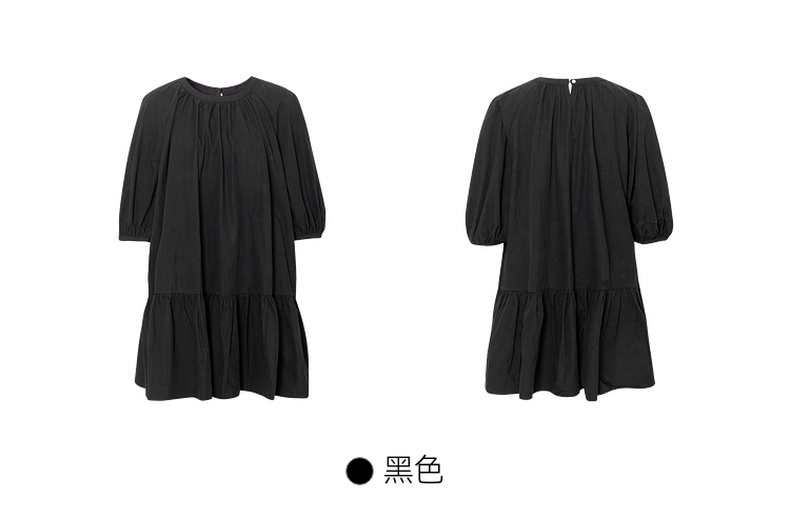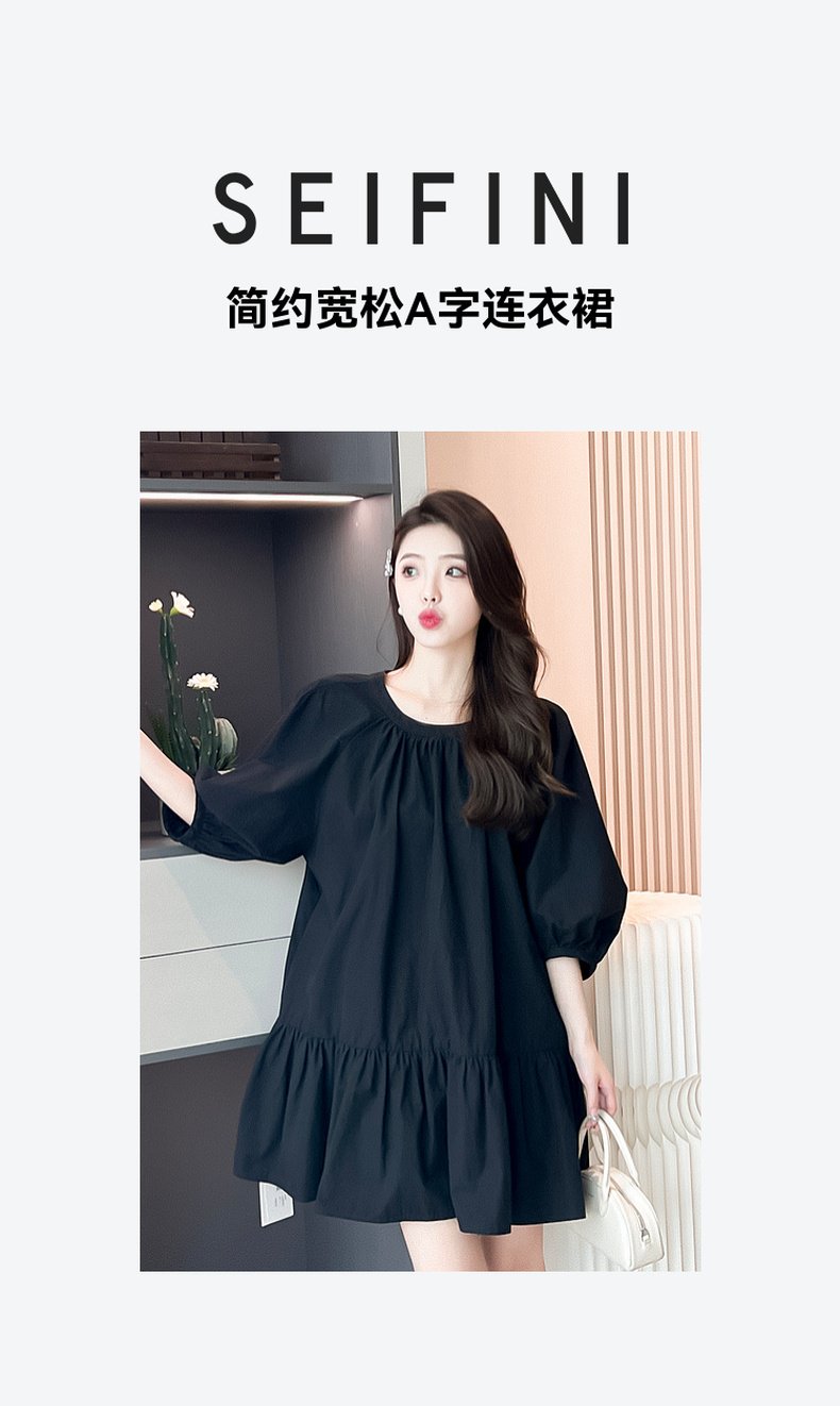 【严选】诗凡黎黑色打褶娃娃连衣裙2024夏新款流行漂亮小众设计减龄小黑裙SF6192221