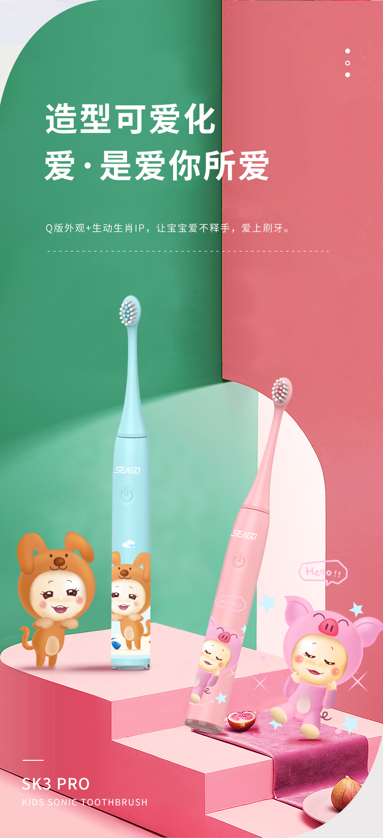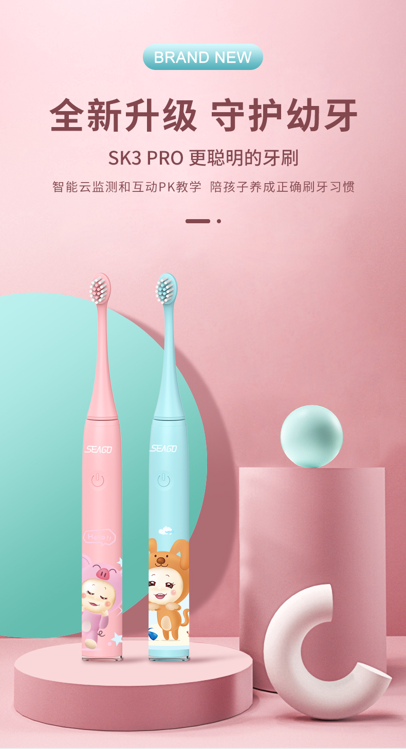 赛嘉儿童智能电动牙刷声波软毛3-6-12岁男女儿童学生自动刷牙神器 SK3pro