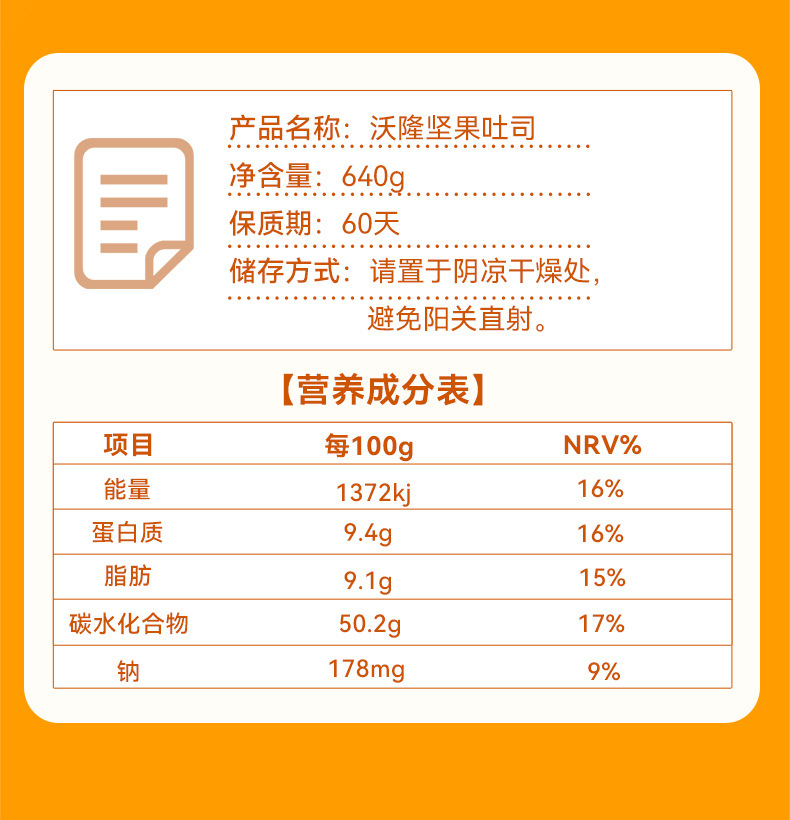 沃隆 坚果 吐司面包 640g 营养 早餐 整箱 切片面包 包邮