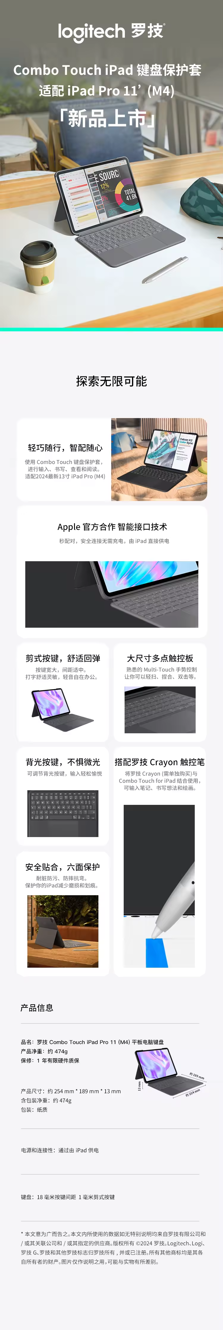 LOGITECH罗技 iPad 键盘套适配 11 英寸 iPad Pro (M4)