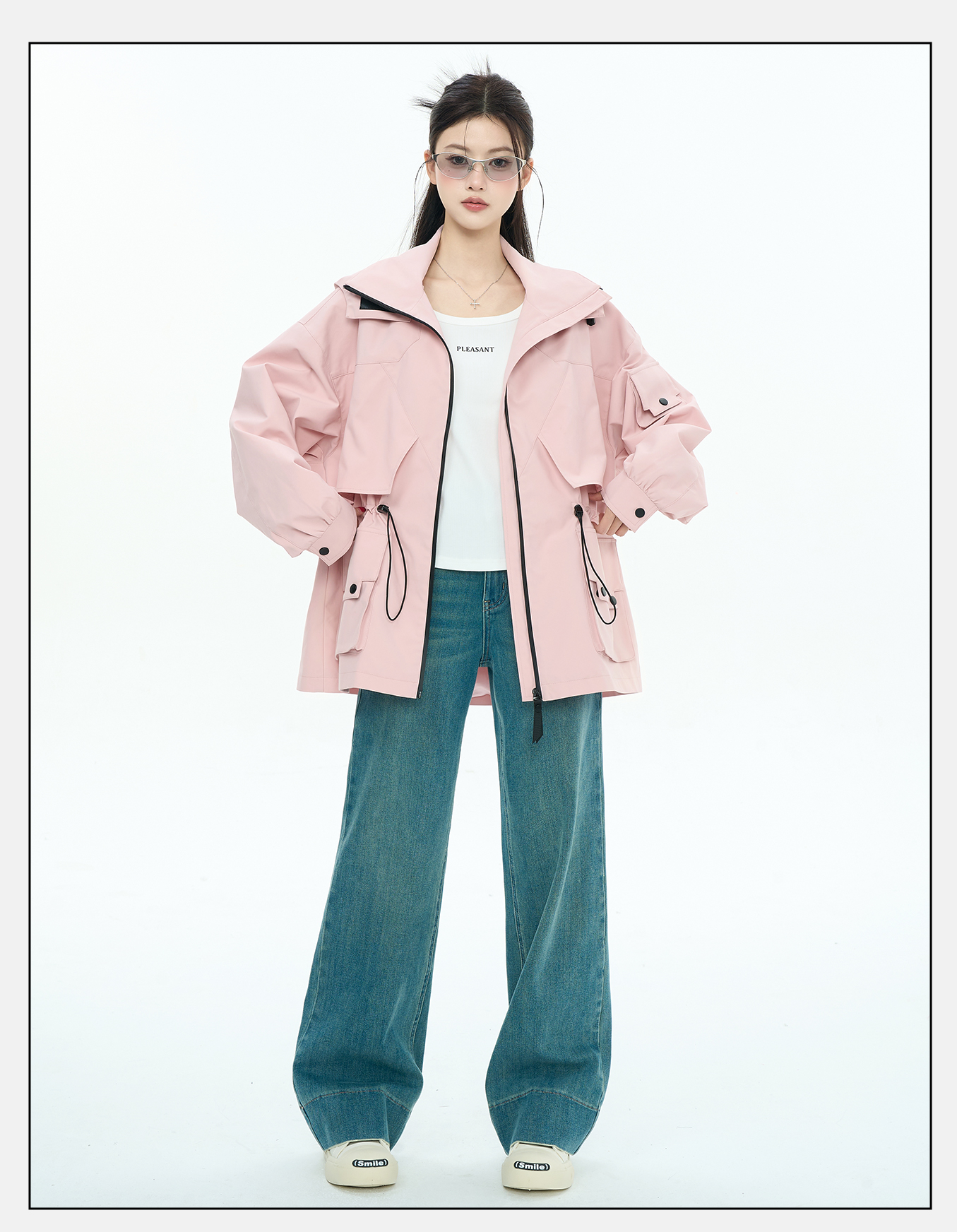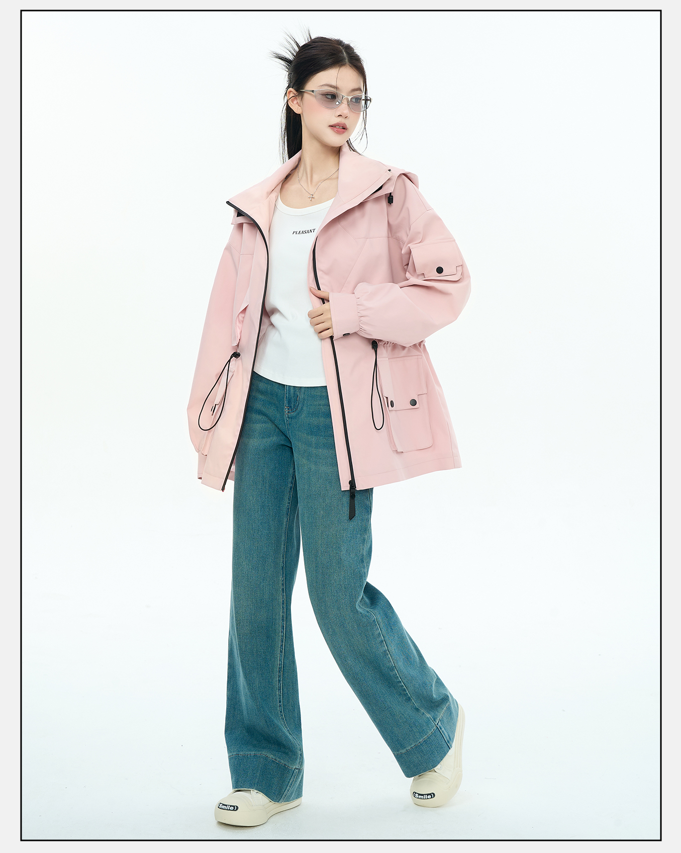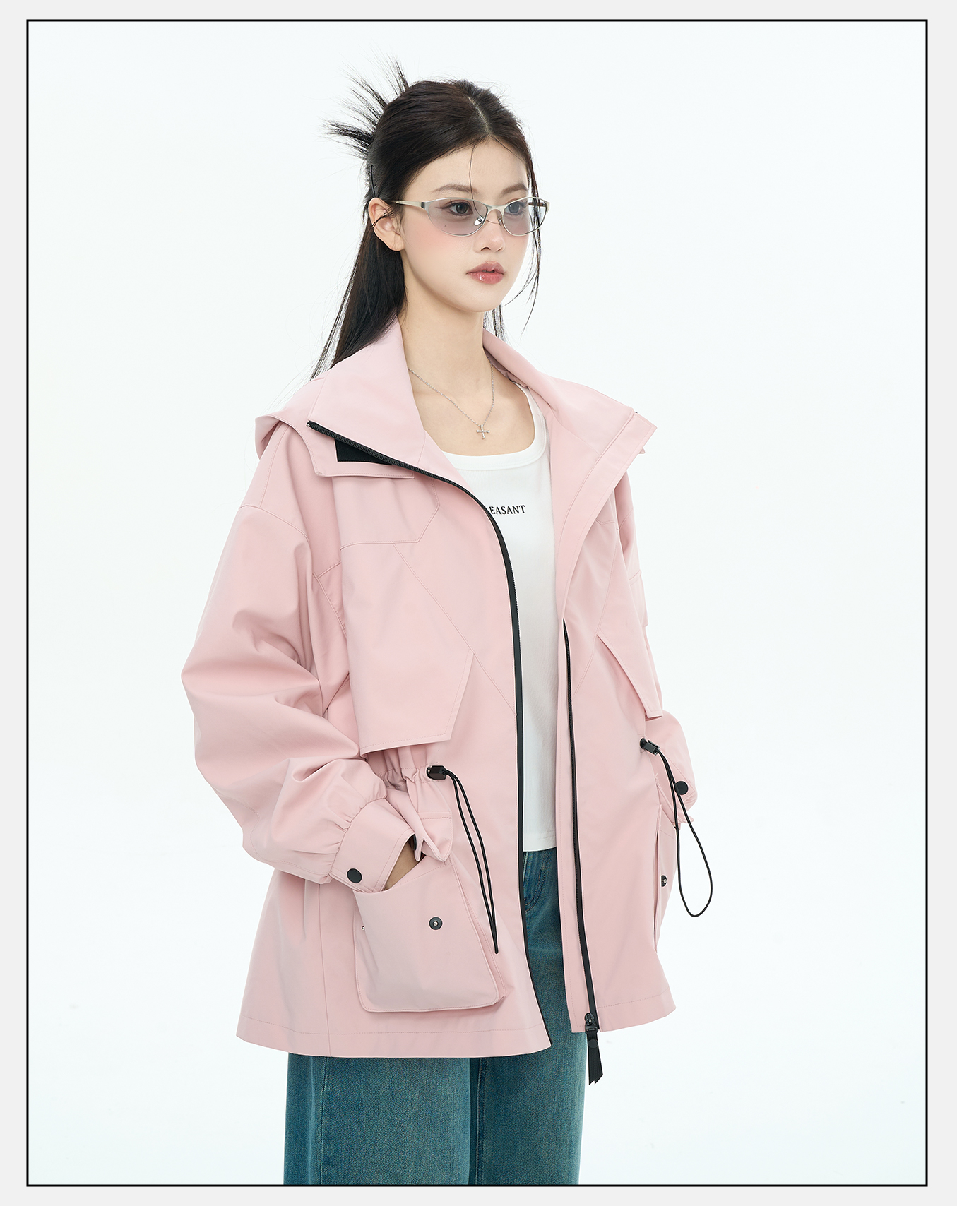 P&X设计师女装2025秋季防风极简风口袋短款风衣825319172 粉色