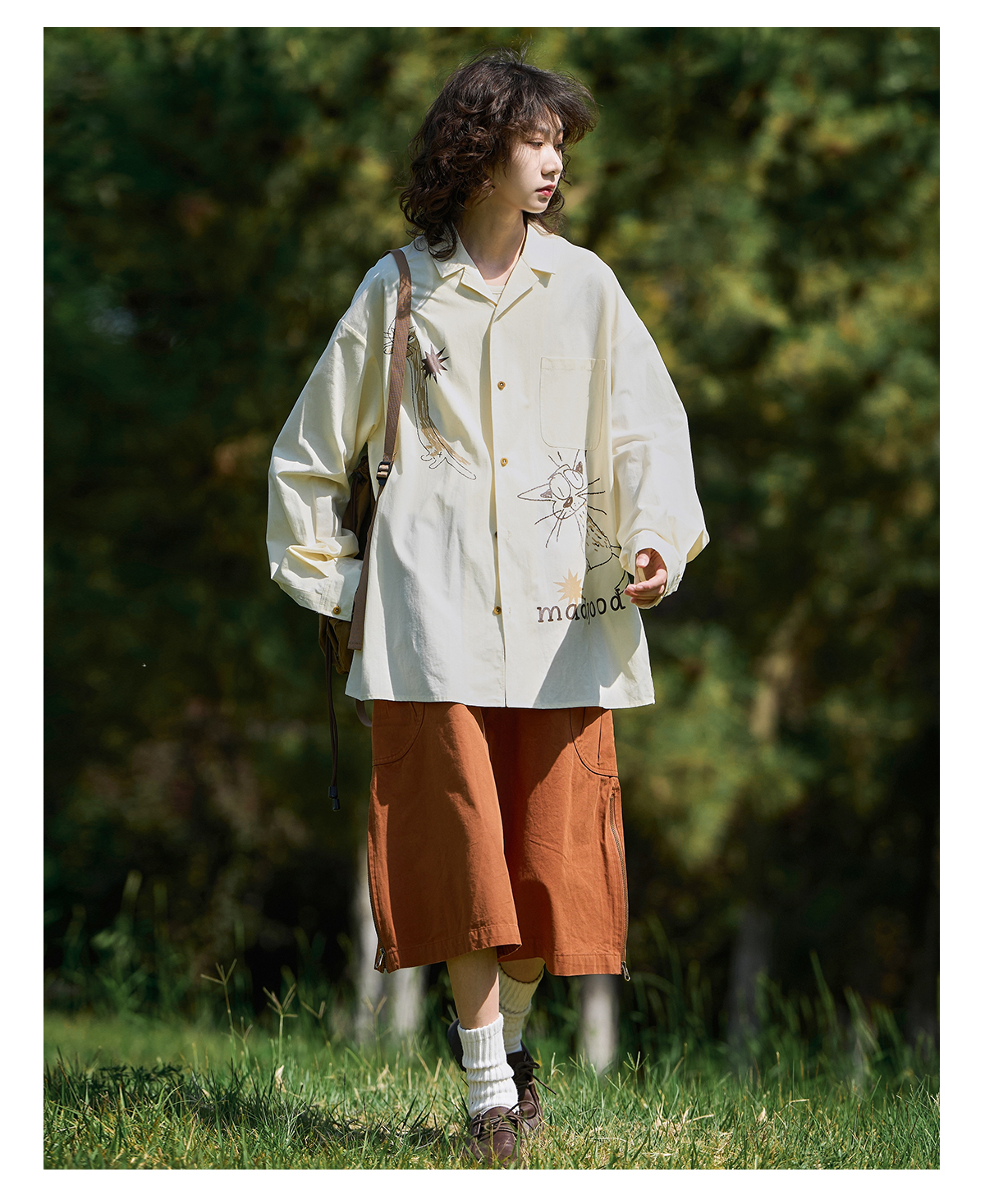马得工地/MDGDCS243168/小猫印花古巴领长袖衬衫